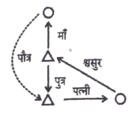 सहायक समीक्षा अधिकारी (मुख्य) परीक्षा, 2010 सामान्य अध्ययन (Part-II)Total Questions: 6031. एक समबहुभुज में, जिसका प्रत्येक कोण 156° का हो, उसमें भुजाएं होंगी -(a) 10(b) 12(c) 14(d) 15Correct Answer: (d) 15Solution:व्याख्या ((n - 2) x 180)/n = 156180n - 360 = 156n24n = 360n = 360/24=1532. B की आयु A की दोगुनी, किन्तु से आधी है C, A की आयु का आधा है किन्तु D से दोगुना बड़ा है। कौन से दो लोग अधिकतम एवं न्यूनतम आयु वाले हैं?(a) F और A(b) F और D(c) F, और B(d) F और CCorrect Answer: (b) F और DSolution:व्याख्या - B = 2A F = 2B C = 1/2 x A = 2Dअतः F > B > A > C > D33. यदि 15789 को लिखा जाए XTZAL और 2346 को NPSU, तो 23549 को कैसे लिखा जाएगा?(a) NPTSL(b) PNTSL(c) NPTUL(d) NBTSLCorrect Answer: (a) NPTSLSolution:व्याख्या - प्रत्येक संख्या को उसके अक्षर कोड में लिखा गया है।जिस प्रकार - 1 5 7 8 9 X T Z A L उसी प्रकार - 2 3 5 4 9 N P T S Lअतः 23549 को NPTSL लिखा जायेगा। 2346 NP SU34. निम्नलिखित में से कौन-सा अन्य से सुमेलित नहीं है?(a) CHM(b) DIN(c) LPU(d) KOTCorrect Answer: (a) CHMSolution:व्याख्या- CHM में कोई भी वर्ण स्वर नहीं है जबकि DIN, LPU, KOT में स्वर वर्ण I, U, O हैं।35. निम्नलिखित अंकों की श्रृंखला में अन्त में रिक्त स्थान में कौन-सा अंक आएगा?2-3,4-6,7-10, 11-15, 16-21, 22-(a) 25(b) 27(c) 28(d) 29Correct Answer: (c) 28Solution:36. निम्नलिखित आरेख निरूपित करता है : डॉक्टर, पिता एवं आदमी, डॉक्टरों को निरूपित करने वाली आकृति है -(a) वृत्त(b) वर्ग(c) आयत(d) इनमें से कोई भीCorrect Answer: (c) आयतSolution:व्याख्या - आदमी पिता हो सकता है, पिता डॉक्टर हो सकता है अतः आरेख में आयत डॉक्टरों को निरूपित कर रहा है।37. AGLPS...... की श्रृंखला में अगला वर्ण होगा -(a) B(b) R(c) T(d) UCorrect Answer: (d) USolution:व्याख्या- श्रृंखला में एक-एक कम करके जोड़ा गया हैA-G-L-P-S-U+6 +5 +4 +3 +238. अरुण कहता है, "यह लड़की मेरी माता के पौत्र की पत्नी है" अरुण का उस लड़की से क्या सम्बन्ध है?(a) पितामह का(b) पति का(c) पिता का(d) श्वसुर काCorrect Answer: (d) श्वसुर काSolution:39. निम्नलिखित में से वह कौनसी संख्या है जिसमें 13 से भाग देने पर शेष 4 बचता है और 17 से भाग देने पर 11 शेष बचता है?(a) 578(b) 589(c) 654(d) 760Correct Answer: (b) 589Solution:व्याख्या - 589 को 13 से भाग देने पर 4 शेष बचता है जबकि 17 से भाग देने पर 11 शेष बचता है।40. X का मान, जो QCP को एक सरल रेखा बना देगी, वह है -(a) 34 deg(b) 60 deg(c) 68 deg(d) 120 degCorrect Answer: (a) 34 degSolution:3x + 10 + 2x = 180 (सरल रेखा में बना कोण 180 deg होता है।)⇒ 5x + 10 = 1805 x 170 x = 170/5 = 34°Submit Quiz« Previous123456Next »