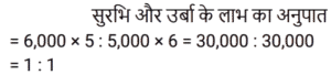 साझेदारीTotal Questions: 2121. सुरभि ने किसी उद्योग में 5 महीने के लिए ₹6,000 और उर्वी ने 6 महीने के लिए ₹5,000 निवेश किये। लाभ में दोनों का अनुपात क्या होगा? [RRB ALP 21/08/2018 (Evening)](a) 6 : 5(b) 1 : 1(c) 5 : 6(d) 36 : 25Correct Answer: (b) 1 : 1Solution:Submit Quiz« Previous123