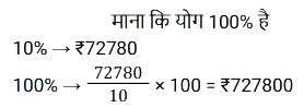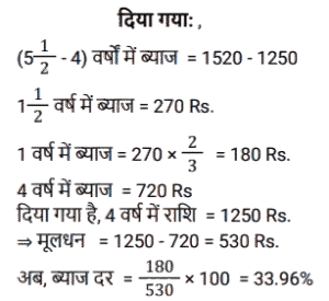 साधारण ब्याज (SSC) (Part-III)Total Questions: 501. एक निश्चित राशि पर साधारण ब्याज, राशि का पांचवां हिस्सा है और प्रतिवर्ष ब्याज दर प्रतिशत वर्षों की संख्या का 3.2 गुना है। यदि ब्याज की दर में 4% की वृद्धि होती है, तो ₹7,500 पर 4 वर्षों के लिए साधारण ब्याज (₹ में) कितना होगा ? [Matriculation Level 21/06/2024 (Shift-4)](a) 2,500(b) 3,000(c) 3,600(d) 5,100Correct Answer: (c) 3,600Solution:2. एक राशि को 4 वर्ष के लिए एक निश्चित दर पर साधारण ब्याज पर रखा गया। यदि इसे 5% अधिक दर पर रखा जाता, तो ₹520 अधिक प्राप्त होते। राशि ज्ञात कीजिए। [Matriculation Level 21/06/2024 (Shift-4)](a) ₹2,200(b) ₹2,600(c) ₹2,400(d) ₹2,000Correct Answer: (b) ₹2,600Solution:3. यदि एक निश्चित धनराशि 5% वार्षिक साधारण ब्याज़ की दर पर 2 ½ वर्ष में ₹810 हो जाती है, तो धनराशि ज्ञात करें। [Matriculation Level 24/06/2024 (Shift-1)](a) ₹740(b) ₹750(c) ₹720(d) ₹730Correct Answer: (c) ₹720Solution:4. यदि कोई बैंक 4.5% वार्षिक दर से साधारण ब्याज देता है। तो बताइए कि किसी व्यक्ति को प्रति वर्ष ब्याज के रूप में ₹7,500 प्राप्त करने के लिए कितनी धनराशि (₹ में) जमा करना चाहिए ? [Matriculation Level 25/06/2024 (Shift-1)](a) 1,33,333.33(b) 2,33,333.33(c) 2,66,666.67(d) 1,66,666.67Correct Answer: (d) 1,66,666.67Solution:5. बैंक खाते में ₹50,000 रुपये जमा हैं। खाते में पहले से ही कुछ धनराशि थी। अब बैंक एक साल में साधारण ब्याज के रूप में ₹7,500 देता है। साधारण ब्याज की दर 4.5% वार्षिक है। तो बताइए कि खाते में पहले से कितनी धनराशि (₹ में) थी ? [Matriculation Level 26/06/2024 (Shift-1)](a) 1,33,333.33(b) 1,66,666.67(c) 1,16,666.67(d) 1,13,333.33Correct Answer: (c) 1,16,666.67Solution:6. एक निश्चित धनराशि साधारण ब्याज की एक निश्चित दर पर 4 वर्ष में ₹1,250 और 5 ½ वर्ष में ₹1,520 हो जाती है। वार्षिक ब्याज दर (दशमलव के दो स्थान तक सही) ज्ञात करें। [Higher Secondary 25/06/2024 (Shift-2)](a) 43.96%(b) 33.96%(c) 23.96%(d) 53.96%Correct Answer: (b) 33.96%Solution:7. किस अवधि में (वर्षों में) ₹1,500 की धनराशि 10% वार्षिक साधारण ब्याज की दर से ₹2,250 हो जाएगी ? [Higher Secondary 25/06/2024 (Shift-4)](a) 3.5(b) 5(c) 3(d) 5.5Correct Answer: (b) 5Solution:8. मनीष ने 10% वार्षिक साधारण ब्याज पर एक निश्चित मूलधन का निवेश किया। यदि उसे 1 वर्ष के बाद ₹72780 का ब्याज मिलता है, तो उसके द्वारा निवेश किया गया मूलधन (₹ में) कितना है ? [Graduate Level 21/06/2024 (Shift-3)](a) 727812(b) 728383(c) 727925(d) 727800Correct Answer: (d) 727800Solution:9. किसी धनराशि पर साधारण ब्याज उस राशि का 9/45 है। यदि वर्षों की संख्या, संख्यात्मक रूप से वार्षिक दर-प्रतिशत की 5 गुनी है, तो वार्षिक दर प्रतिशत ज्ञात कीजिए। [Graduate Level 26/06/2024 (Shift-4)](a) 7%(b) 2%(c) 5%(d) 3%Correct Answer: (b) 2%Solution:10. एक व्यक्ति ने साधारण ब्याज पर कुछ धनराशि उधार ली। 3 वर्षों के बाद, उसने ऋणदाता को 4/3 धनराशि वापस कर दी। ब्याज दर ज्ञात कीजिए। [SSC CHSL Tier II 02/11/2023](a) 11 ⅑% वार्षिक(b) 11 ²⁄₉% वार्षिक(c) 11 ³⁄₉% वार्षिक(d) 11 ⁴⁄₉% वार्षिकCorrect Answer: (a) 11 ⅑% वार्षिकSolution:Submit Quiz12345Next »