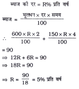 हरियाणा ऑक्शन रिकॉर्डर परीक्षा (15.05.2016)Total Questions: 10021. 0.863 x 0.637 +0.863 x 0.363 = ?(1) 1(2) 0.863(3) 8.63(4) 1.226Correct Answer: (2) 0.863Solution:?=0.863 x 0.637 +0.863 x 0.363=0.863 (0.637 +0.363)=0.863 x 10.86322. एक साइकिल सवार की औसत चाल, जो प्रथम, द्वितीय तथा तृतीय कि.मी. की दूरी क्रमश: 20. 16 तथा 12 कि.मी./घंटा की चाल से तय करता है (किमी/घंटा में) क्या है ?(1) 16.24(2) 16(3) 15.66(4) 15.32Correct Answer: (4) 15.32Solution:23. 100 से कम की वे सभी धन पूर्णांक संख्याओं का योग जो पाँच की गुणज हैं, क्या है?(1) 950(2) 1230(3) 760(4) 875Correct Answer: (1) 950Solution:24. एक कार्य को 6 आदमी तथा 5 औरतें मिलकर 6 दिनों में अथवा 3 आदमी और 4 औरतें 10 दिनों में कर सकते हैं। यह कार्य 9 आदमी और 15 औरतों के द्वारा कितने दिनों में पूरा कर लिया जाएगा ?(1) 1 दिन(2) 2 दिन(3) 3 दिन(4) 4 दिनCorrect Answer: (3) 3 दिनSolution:25. यदि सुनील 5 कि.मी/घंटा की गति से स्थिर जल में नाव खेता है तथा उसकी धारा के विपरीत गति 3.5 कि.मी./घंटा हो, तो सुनील की धारा की दिशा में गति क्या होगी ?(1) 4.25 किमी./घंटा(2) 6 किमी./घंटा(3) 6.5 किमी./घंटा(4) 8.5 किमी./घंटाCorrect Answer: (3) 6.5 किमी./घंटाSolution:26. एक टंकी को भरने के लिए दो नल हैं जबकि तीसरा उसे खाली करने के लिए। जब तीसरा नल बन्द हो, तो वे उसे क्रमशः 10 मिनट और 12 मिनट में भर सकते हैं। यदि तीनों नल खुले हों, तो टंकी 15 मिनट में भर जाती है। यदि पहले दो नल बन्द हों तो तीसरा नल पूरी भरी टंकी को कितने समय में खाली कर सकता है?(1) 7 मिनट(2) 9 मिनट और 32 सेकण्ड(3) 8 मिनट और 34 सेकण्ड(4) 6 मिनटCorrect Answer: (3) 8 मिनट और 34 सेकण्डSolution:माना, तीसरा नल भरी टंकी को x मिनट में खाली कर सकता है। तीनों नल एक साथ खोलने पर,27. दो संख्याओं का ल.स.अ. 2310 तथा उनका म.स.अ. 30 है। यदि उनमें से एक संख्या 7 × 30 है, तो दूसरी संख्या होगी(1) 220(2) 330(3) 425(4)512Correct Answer: (2) 330Solution:28. 10 वर्ष पहले चन्द्रावती की माता अपनी पुत्री से उम्र में चार गुनी बड़ी थी। 10 वर्ष के पश्चात् माता पुत्री से उम्र में दोगुनी होगी। चन्द्रावती की वर्तमान उम्र कितनी है?(1) 5 वर्ष(2) 10 वर्ष(3) 20 वर्ष(4) 30 वर्षCorrect Answer: (3) 20 वर्षSolution:29. A, B को 600 रुपए दो वर्ष के लिए तथा 150 रुपए C को चार वर्ष के लिए उधार देता है। वह कुल मिलाकर दोनों से 90 रुपए साधारण ब्याज के रूप में प्राप्त करता है। ब्याज की दर प्रति वर्ष है(1) 4%(2) 5%(3) 10%(4) 12%Correct Answer: (2) 5%Solution:30. यदि a : b = 2 : 3 और b : c = 5 : 7 तो a : c = ?(1) 10:21(2) 21 : 10(3) 5 : 7(4) 10 : 5Correct Answer: (1) 10:21Solution:Submit Quiz« Previous12345678910Next »
