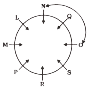I. L, M, N, O, P, Q, R और S केंद्र की ओर मुख करके एक वृत्त में बैठे हैं।