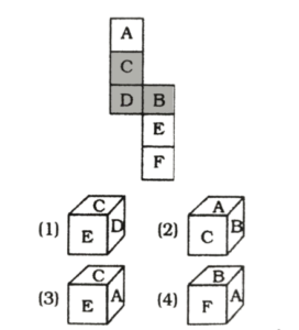 Solution:कागज के पन्ने को मोड़कर बॉक्स बनाने परः[A] के विपरीत सतह पर [D] है।