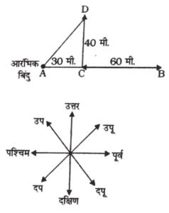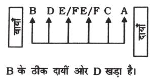 हरियाणा CET परीक्षा, ग्रुप – D (22.10.2023) द्वितीय पालीTotal Questions: 10031. कुनाल 90 मीटर पूर्व की ओर चलता है। वहाँ से वह 60 मीटर पीछे पश्चिम की ओर चलता है। इसके बाद वह दाएँ मुड़कर 40 मीटर चलता है। वह अपने आरंभिक बिंदु से कितनी दूर तथा किस दिशा में है?(1) 40 मीटर, उत्तर-पिश्चम(2) 50 मीटर, उत्तर-पूर्व(3) 60 मीटर, पूर्व(4) 30 मीटर, उत्तर(5) उत्तर नहीं देना चाहतेCorrect Answer: (2) 50 मीटर, उत्तर-पूर्वSolution:AD = √(AC)² + (CD)² = √(30)² + (40)² = √900 + 1600 = √2500 = 50 मीटरबिंदु A के उत्तर-पूर्व में बिंदु D है।32. नीचे अंग्रेजी अक्षरों के समूह को अव्यवस्थित क्रम में दिया गया है। संख्याओं के उस संयोजन का चयन कीजिए जिसके अनुसार अक्षरों को व्यवस्थित करने पर एक अर्थपूर्ण शब्द बने।E L P I O C1 2 3 4 5 6(1) 3, 5, 2, 4, 6, 1(2) 3, 5, 2, 6, 4, 1(3) 3, 4, 5, 2, 6, 1(4) 2, 1, 5, 4, 3, 6(5) उत्तर नहीं देना चाहतेCorrect Answer: (1) 3, 5, 2, 4, 6, 1Solution:3 5 2 4 6 1P O L I C E33. दी गई श्रृंखला में लुप्त पद ज्ञात कीजिए।4, 27, 16, 125, 36, ?, 64, 729(1) 216(2) 343(3) 512(4) 121(5) उत्तर नहीं देना चाहतेCorrect Answer: (2) 343Solution:(2)² = 4(3)³ = 27(4)² = 16(5)³ = 125(6)² = 36(7)³ = 343(8)² = [64](9)³ = 72934. एक निश्चित कूटभाषा में 'PHYSICS' को 'RJAUKEU' लिखा जाता है, तो 'BIOLOGY' को उसी कूटभाषा में कैसे लिखा जाएगा?(1) DKQNQIA(2) DKQOQJA(3) DKQPQJB(4) DKQMQIB(5) उत्तर नहीं देना चाहतेCorrect Answer: (1) DKQNQIASolution:35. A, B, C, D, E तथा F उत्तर की ओर मुँह करके एक पंक्ति में खड़े हैं, लेकिन आवश्यक नहीं है कि उसी क्रम में हों। 'E' और 'F' मध्य में हैं 'A' और 'B' किनारे पर है। 'C', 'A' के ठीक बाई ओर खड़ा है। 'B' के ठीक दाईं ओर कौन खड़ा है?(1) D(2) C(3) E(4) F(5) उत्तर नहीं देना चाहतेCorrect Answer: (1) DSolution:36. दो कथन और उसके बाद दो निष्कर्ष I और II दिए गए हैं। दिए गए कथनों को सत्य मानते हुए चाहे वे सामान्य ज्ञात तथ्यों से भिन्न ही क्यों न प्रतीत होते हों, निर्णय कीजिए कि कौन सा/से निष्कर्ष दिए गए कथनों के आधार पर तर्कसंगत रूप से निकलता है/निकलते हैं?कथनःकुछ फूल, गुलाब हैं।कुछ गुलाब, लाल हैं।निष्कर्षःI. सभी गुलाब, फूल हैं।II. कुछ फूल, लाल हैं।(1) केवल निष्कर्ष II निकलता है।(2) निष्कर्ष I और II दोनों निकलते हैं।(3) न तो निष्कर्ष I और न ही II निकलता है।(4) केवल निष्कर्ष I निकलता है।(5) उत्तर नहीं देना चाहतेCorrect Answer: (3) न तो निष्कर्ष I और न ही II निकलता है।Solution:दोनों कथन अंशव्यापी सकारात्मक (1-प्रकार) हैं। दो अंशव्यापी कथनों से कोई भी निष्कर्ष नहीं निकलता है।37. विषम का चयन कीजिए।(1) कलम(2) रबर(3) पुस्तक(4) पेंसिल(5) उत्तर नहीं देना चाहतेCorrect Answer: (3) पुस्तकSolution:स्पष्टतः, पुस्तक अन्य तीन वस्तुओं से अलग है। कलम, रबर, और पेंसिल अलग-अलग स्टेशनरी वस्तुएँ हैं। पुस्तक आवरण सहित एक मुद्रित सामग्री है।38. एक परिवार में पाँच सदस्य 'P', 'Q', 'R', 'S', और 'T" हैं। 'P' और 'R' भाई-भाई हैं। "T", 'Q' का चाचा/मामा है। 'S', T' का पुत्र है। 'Q', 'R' की बहन है। 'P', 'S' से किस प्रकार संबंधित है?(1) पिता(2) चचेरा/ममेरा भाई(3) चाचा/मामा(4) भाई(5) उत्तर नहीं देना चाहतेCorrect Answer: (2) चचेरा/ममेरा भाईSolution:Q बहन है P और R की।T अंकल है P, Q और R का।S पुत्र है T का।अतः, P 