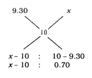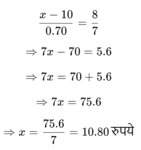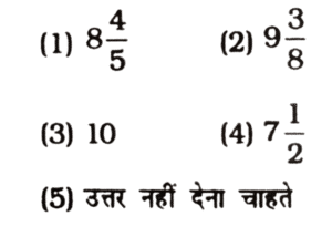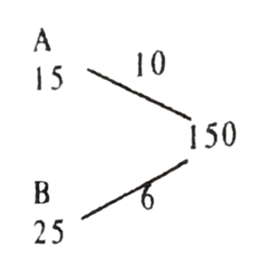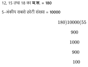 हरियाणा CET परीक्षा, ग्रुप – D (22.10.2023) प्रथम पालीTotal Questions: 10041. 20% तथा 10% के दो क्रमिक बट्टों के तुल्य एकल बट्टा है:(1) 25%(2) 28%(3) 27%(4) 30%(5) उत्तर नहीं देना चाहतेCorrect Answer: (2) 28%Solution:20% तथा 10% के दो क्रमिक बट्टों के समतुल्य एकल बट्टा= (20 + 10 - (20 × 10)/100)%= (30 - 2)%= 28%42. चार क्रमागत संख्याओं A, B, C और D का औसत 49.5 है। संख्या B और D का गुणनफल क्या होगा?(1) 2450(2) 2352(3) 2550(4) 2499(5) उत्तर नहीं देना चाहतेCorrect Answer: (4) 2499Solution:चार क्रमागत संख्याओं A, B, C एवं D का औसत = 49.548 49 50 51A B C D ↓ 49.5B तथा D का गुणनफल = 49 × 51= 249943. 8000 रुपये की राशि 5% वार्षिक चक्रवृद्धि ब्याज की दर पर कितने वर्षों में 9261 रुपये हो जाएगी, जबकि ब्याज वार्षिक संयोजित होता है?(1) 3(2) 14/3(3) 5(4) 10/3(5) उत्तर नहीं देना चाहतेCorrect Answer: (1) 3Solution:44. 5 - अंकीय सबसे छोटी संख्या, जो 12, 15 और 18 से विभाजित है, होगी:(1) 10,015(2) 10,020(3) 10,080(4) 10,010(5) उत्तर नहीं देना चाहतेCorrect Answer: (3) 10,080Solution:अभीष्ट संख्या = 10000 + 180 - 100= 1008045. 2² × 3³ × 5⁵, 2³ × 3² × 5² × 7 और 2⁴ × 3⁴ × 5 × 7² × 11 का HCF है(1) 2² × 3³ × 5 × 7² × 11(2) 2² × 3³ × 5⁵(3) 2⁴ × 3⁴ × 5⁵ × 7 × 11(4) 2² × 3² × 5(5) उत्तर नहीं देना चाहतेCorrect Answer: (4) 2² × 3² × 5Solution:2³ × 3³ × 5⁵2³ × 3² × 5² × 72⁴ × 3⁴ × 5 × 7² × 11म.स. = 2³ × 3² × 546. 9.30 रुपये प्रति किलोग्राम वाले गेहूँ को किसी अन्य प्रकार के गेहूँ में 8 : 7 के अनुपात में मिलाया गया। यदि मिश्रण का मूल्य 10 रुपये प्रति किलोग्राम है, तो दूसरे प्रकार के गेहूँ का मूल्य प्रति किलोग्राम क्या है?(1) 10.60 रुपये(2) 10.80 रुपये(3) 11.00 रुपये(4) 10.30 रुपये(5) उत्तर नहीं देना चाहतेCorrect Answer: (2) 10.80 रुपयेSolution:माना दूसरे प्रकार के गेहूं का मूल्य प्रति किग्रा.मिश्रण के नियम से,47. a : b के प्रत्येक पद में जोड़े जानी वाली संख्या जिससे अनुपात c : d प्राप्त हो, है:(1) (ac + bd) / (c + a)(2) (ad + bc) / (c + d)(3) (ab - cd) / (c - b)(4) (ab - cd) / (a - b)(5) उत्तर नहीं देना चाहतेCorrect Answer: (3) (ab - cd) / (c - b)Solution:माना जोड़ी जाने वाली = kप्रश्नानुसार,(a + k)/(b + k) = c/d⇒ ad + dk = bc + ck⇒ k(d - c) = bc - ad⇒ k = (bc - ad)/(d - c)⇒ k = (ad - bc)/(c - d)48. किसी राशि को 3 : 5 के अनुपात में विभाजित किया गया। यदि बड़ा भाग 75 रुपये है, तो राशि है:(1) 130 रुपये(2) 150 रुपये(3) 240 रुपये(4) 120 रुपये(5) उत्तर नहीं देना चाहतेCorrect Answer: (4) 120 रुपयेSolution:49. यदि 0 < x < 1 है, तो निम्न में से बड़ी से बड़ी संख्या है :(1) x²(2) 1/x(3) 1/x²(4) x(5) उत्तर नहीं देना चाहतेCorrect Answer: (3) 1/x²Solution:0 < x < 1विकल्पों में से, बड़ी से बड़ी संख्या= 1/x²50. A एक कार्य का भाग 1/3 दिनों में कर सकता है जबकि B उसी कार्य का 2/5 भाग 10 दिन में कर सकता है। A तथा B दोनों मिल कर उस कार्य को कितने दिन में पूरा कर सकते हैं?(1)(2)(3)(4)(5) उत्तर नहीं देना चाहतेCorrect Answer: (2)Solution:A द्वारा लिया गया समय= 3 × 5 = 15 दिनB द्वारा लिया गया समय= 5/2 × 10 = 25 दिन(A + B) द्वारा कार्य को पूरा करने में लगा समय= 150/(10 + 6)= 150/16 = 75/8 दिनSubmit Quiz« Previous12345678910Next »