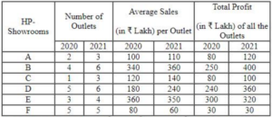 3. For all the outlets of a given showroom, if the total profit is equal to the total sales minus the total investment, then the total investment of HP-showroom F in the year 2020 was:
