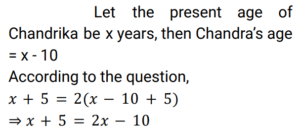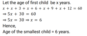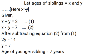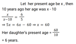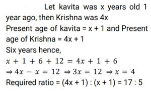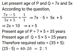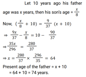 Age (Railway Maths) (Part – I)Total Questions: 5031. Ten years ago, a son was 1/8th of his father's age. Now, he is 9/37th of his father's present age. Find the present age of the father. [Group D 25/08/2022 (Morning)](a) 67 years(b) 74 years(c) 57 years(d) 87 yearsCorrect Answer: (b) 74 yearsSolution:32. One year ago, Krishna was four times as old as his daughter Kavitha. Six years hence, Krishna's age will be 12 years more than his daughter's age. Find the ratio of the present ages of Krishna and his daughter. [Group D 25/08/2022 (Morning)](a) 11 : 3(b) 9 : 2(c) 12 : 5(d) 17 : 5Correct Answer: (d) 17 : 5Solution:33. The average age of Raj and his sister is 8 years. If Raj's age is 10 years, then find the age of his sister. [Group D 25/08/2022 (Afternoon)](a) 7 years(b) 9 years(c) 6 years(d) 8 yearsCorrect Answer: (c) 6 yearsSolution:34. Today, age of the father is twice the sum of the ages of his 3 children. After 15 years father's age will be equal to the sum of the ages of his children. How old is the father 15 years from today? [Group D 25/08/2022 (Evening)](a) 90 years(b) 85 years(c) 75 years(d) 95 yearsCorrect Answer: (c) 75 yearsSolution:35. Chandra is 10 years younger than Chandrika. 5 years later Chandrika will be twice as old as Chandra. Find Chandrika's present age. [Group D 25/08/2022 (Evening)](a) 20 years(b) 10 years(c) 15 years(d) 25 yearsCorrect Answer: (c) 15 yearsSolution:36. The difference of the ages of two siblings is 7 years. If the sum of their ages is 21 years, how old is the younger of the siblings? [Group D 26/08/2022 (Morning)](a) 3 years(b) 7 years(c) 14 years(d) 10 yearsCorrect Answer: (b) 7 yearsSolution:37. The ratio between the present ages of P and Q is 7 : 5, respectively. The ratio between P's age 5 years ago and Q's age 5 years hence is 1 : 1. What is the ratio between P's age 5 years hence and Q's age 5 years ago? [Group D 26/08/2022 (Morning) ](a) 1 : 2(b) 2 : 1(c) 3 : 2(d) 2 : 3Correct Answer: (b) 2 : 1Solution:38. The sum of the ages of five children born at intervals of three years each, is 60 years. How old is the youngest child? [Group D 26/08/2022 (Evening) ](a) 6 years(b) 4 years(c) 7 years(d) 5 yearsCorrect Answer: (a) 6 yearsSolution:39. Find the answer of given question? [Group D 26/08/2022 (Evening) ](a) 12 years(b) 14 years(c) 20 years(d) 6 yearsCorrect Answer: (d) 6 yearsSolution:40. If the age of Ratan is one-third the age of Jatin and the sum of their ages is 84 years, then find the age of Jatin. [Group D 29/08/2022 (Afternoon) ](a) 36 years(b) 25 years(c) 63 years(d) 52 yearsCorrect Answer: (c) 63 yearsSolution:Submit Quiz« Previous12345Next »