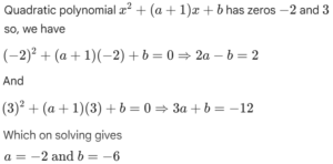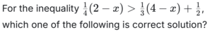 Algebra (Mathematics Chapterwise Solved Papers for Teaching) (Part-4)Theory of Equation and InequationsTotal Questions: 5031. Solve the following equation? [UKPSC Lecturer (Mains) 2020](a) 1(b) 53/49(c) 50/39(d) 59/37Correct Answer: (b) 53/49Solution:32. Solve the following equation? [UKPSC Lecturer (Mains) 2020] (a) 𝓍 >18(b) 𝓍 >16(c) 𝓍 >14(d) 𝓍 >12Correct Answer: (b) 𝓍 >16Solution:33. The number of values of 'a' for which the system of equations [UKPSC Lecturer (Mains) 2020](a+1) 𝓍+8y = 4a a𝓍+ (a+3) y = 3a - 1 has infinitely many solutions is :(a) 2(b) 1(c) 0(d) infiniteCorrect Answer: (b) 1Solution:For infinitely many solutions of the given system of linear equations we must have 34. The inequality 7𝓍²+11>𝓍³ +17𝓍 is satisfied for all values of 𝓍 which satisfy the following: [UKPSC Lecturer (Mains) 2020](a) 0<𝓍<1(b) 1∞(c) -∞<𝓍<1(d) -1<𝓍<1Correct Answer: (c) -∞<𝓍<1Solution:35. The number of values of k for which the linear equations 4𝓍+ky+2z = 0; k𝓍+4y+z = 0; 2𝓍+2y+z = 0 possess a non-zero solution is: [Haryana PGT 2019](a) 2(b) 1(c) zero(d) 3Correct Answer: (a) 2Solution:36. If the difference between the roots of the equation 𝓍²+a𝓍+1 = 0 is less than √5, then the set of possible values of 'a' is: [Haryana PGT 2019](a) (-3,3)(b) (-3,∞)(c) (3,∞)(d) (-∞,-3)Correct Answer: (a) (-3,3)Solution:37. Solve the following equation? [Haryana TGT 2020](a) 2(b) 1(c) 0(d) -2Correct Answer: (a) 2Solution:38. The pair of equation y = 0 and y = 5 has solutions: [Haryana TGT 2020](a) One solution(b) Two solution(c) no solution(d) Infinitely many solutionsCorrect Answer: (c) no solutionSolution:The pair of equation y = 0 and y = 5 has no solution because they are parallel pair of lines.39. If -2 and 3 are the zeroes of the quadratic polynomial 𝓍²+(a+1) 𝓍+b, then: [Haryana TGT 2020](b) a = -2; b = -6(a) a = 2; b = 6(c) a = -2; b = 6(d) a = 2; b = -6Correct Answer: (b) a = -2; b = -6Solution:40. If one of the zeros of the polynomial 𝓍³+ a𝓍²+ b𝓍 + c is -1, then the product of other two zeros is equal to: [Haryana TGT 2019](a) b-a+1(b) b-a-1(c) a-b+1(d) a-b-1Correct Answer: (a) b-a+1Solution:Submit Quiz« Previous12345Next »