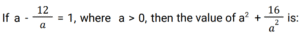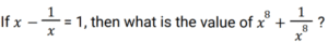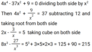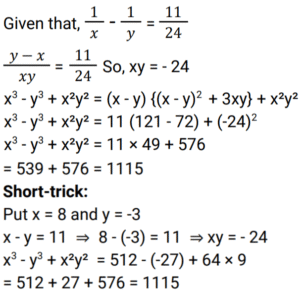 Algebra (SSC) (Part-11)Total Questions: 5031. Solve the following equation: [SSC CGL 13/08/2021 (Afternoon)](a) 1331(b) 1115(c) 1105(d) 1307Correct Answer: (b) 1115Solution:32. If 16x² + y² = 48 and xy = 2, x, y > 0, then the value of (64x³ + y³) is: [SSC CGL 13/08/2021 (Afternoon)](a) 320(b) 340(c) 300(d) 240Correct Answer: (a) 320Solution:33. Solve the following equation: [SSC CGL 13/08/2021 (Afternoon)](a) 41/45(b) 45/41(c) 45/49(d) 49/45Correct Answer: (c) 45/49Solution:34. Solve the following equation: [SSC CGL 13/08/2021 (Evening)](a) 6(b) - 6(c) - 5(d) 5Correct Answer: (d) 5Solution:35. Solve the following equation: [SSC CGL 13/08/2021 (Evening)](a) 3(b) 119(c) 47(d) - 1Correct Answer: (c) 47Solution:36. If a³ + b³ = 405 and a + b = 9, then the value of ab is: [SSC CGL 16/08/2021 (Morning)](a) 15(b) 10(c) 12(d) 8Correct Answer: (c) 12Solution:37. Solve the following equation: [SSC CGL 16/08/2021 (Morning)](a) 184(b) 328(c) 180(d) 220Correct Answer: (a) 184Solution:38. Solve the following equation: [SSC CGL 16/08/2021 (Afternoon)](a) 15(b) 17(c) 11(d) 19Correct Answer: (b) 17Solution:39. Solve the following equation: [SSC CGL 16/08/2021 (Afternoon)](a) 215(b) - 215(c) 35(d) - 35Correct Answer: (a) 215Solution:40. Solve the following equation: [SSC CGL 16/08/2021 (Evening)] (a)(b)(c)(d)Correct Answer: (a)Solution:Submit Quiz« Previous12345Next »