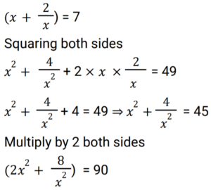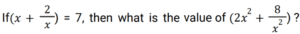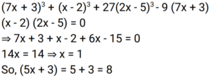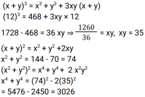 Algebra (SSC) (Part-12)Total Questions: 5111. If ๐ฅโด + ๐ฆโด + ๐ฅยฒ๐ฆยฒ = 117 and ๐ฅยฒ + ๐ฆยฒ - ๐ฅ๐ฆ = 3(4 + โ3), then the value of (๐ฅยฒ + ๐ฆยฒ) will be: [SSC CHSL 12/04/2021 (Morning)](a) 9(b) 6โ3(c) 12(d) 13โ3Correct Answer: (c) 12Solution:12. Solve the following equation. [SSC CHSL 12/04/2021 (Evening)](a) 3479(b) 4379(c) 4370(d) 4279Correct Answer: (b) 4379Solution:13. If ๐ฅ โ ๐ฆ โ ๐ง = 0, then the value of (๐ฅยฒ + ๐ฆยฒ + ๐งยฒ ) รท (๐ฆยฒ + ๐ง๐ฅ) is: [SSC CHSL 12/04/2021 (Evening)](a) - 1(b) 2(c) - 2(d) 1Correct Answer: (b) 2Solution:14. Given that (2๐ฅ + ๐ฆ)ยณ โ (๐ฅ + 2๐ฆ)ยณ = (๐ฅ โ ๐ฆ) [๐ด(๐ฅยฒ + ๐ฆยฒ) + ๐ต๐ฅ๐ฆ], then the value of (2A - B) is: [SSC CHSL 13/04/2021 (Afternoon)](a) 7(b) 6(c) 0(d) 1Correct Answer: (d) 1Solution:15. If xยณ + yยณ = 468 and x + y = 12, then the value of xโด + yโด will be: [SSC CHSL 13/04/2021 (Evening)](a) 3620(b) 2036(c) 3025(d) 3026Correct Answer: (d) 3026Solution:16. If aยฒ + bยฒ + cยฒ + 170 = 2(8a + 5b - 9c), then the value of โ(4a + 8b - c) will be. [SSC CHSL 13/04/2021 (Evening)](a) 15(b) 12(c) 9(d) 8Correct Answer: (c) 9Solution:17. Solve the following equation: [SSC CHSL 15/04/2021 (Morning)](a) 24(b) 23(c) 22(d) 21Correct Answer: (b) 23Solution:18. Solve the following equation: [SSC CHSL 15/04/2021 (Morning)](a) 205/4(b) 635/8(c) 635/4(d) 365/4Correct Answer: (d) 365/4Solution:19. If (7x + 3)ยณ + (x - 2)ยณ + 27(2x - 5)ยณ = 9(7x + 3) (x - 2) (2x - 5) then the value of 5x + 3 is: [SSC CHSL 15/04/2021 (Morning)](a) 8(b) 6(c) 10(d) 2Correct Answer: (a) 8Solution:20. Solve the following equation: [SSC CHSL 16/04/2021 (Morning)](a) 44(b) 94(c) 50(d) 90Correct Answer: (d) 90Solution:Submit Quiz« Previous123456Next »