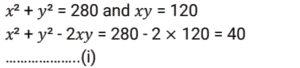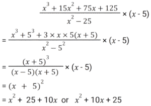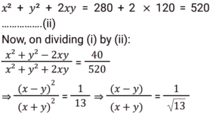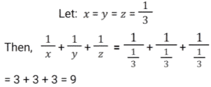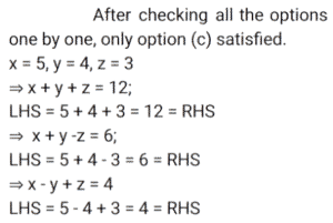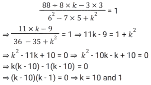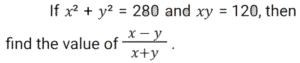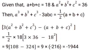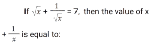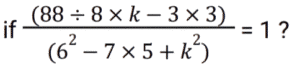 Algebra (SSC) (Part-2)Total Questions: 5021. Solve the following equation: [SSC CGL 09/09/2024 (1st Shift)](a) 𝓍² + 25(b) 𝓍² + 5𝓍 + 25(c) 𝓍² + 10𝓍 + 25(d) 𝓍² - 25Correct Answer: (c) 𝓍² + 10𝓍 + 25Solution:22. Which of the following can be the value of k :- [SSC CGL 09/09/2024 (1st Shift)](a) 1, 10(b) 4, 7(c) 3, 10(d) 2, 7Correct Answer: (a) 1, 10Solution:23. Let a + b = 2c, then which of the following expressions is true? [SSC CGL 09/09/2024 (3rd Shift)](a) a² + 2ac = b² + 2bc(b) a² - 2bc = b² - 2ac(c) a² + 2bc = b² + 2ac(d) a² - ac = b² - bcCorrect Answer: (c) a² + 2bc = b² + 2acSolution:24. If x, y and z are positive numbers and x + y + z = 1, then the least value of 1/𝓍 + 1/y + 1/z is: [SSC CGL 09/09/2024 (3rd Shift)](a) 7(b) 5(c) 9(d) 11Correct Answer: (c) 9Solution:25. Solve the following equation: [SSC CGL 10/09/2024 (1st Shift)](a) 144(b) 146(c) 142(d) 140Correct Answer: (c) 142Solution:26. If the sum of three numbers is 18 and the sum of their squares is 36, then find the difference between the sum of their cubes and three times of their product. [SSC CGL 10/09/2024 (1st Shift)](a) 1449(b) −1944(c) −1494(d) 4149Correct Answer: (b) −1944Solution:27. Find the values of x, y and z, so as to satisfy the equations given below: [SSC CGL 10/09/2024 (2nd Shift)]x + y + z = 12; x + y -z = 6; x - y + z = 4(a) x = 5, y = 4, z = - 3(b) x = 5, y =- 4, z = 3(c) x = 5, y = 4, z = 3(d) x = 5, y = - 4, z = - 3Correct Answer: (c) x = 5, y = 4, z = 3Solution:28. Solve the following equation: [SSC CGL 10/09/2024 (2nd Shift)](a) 47(b) 49(c) 51(d) 45Correct Answer: (a) 47Solution:29. Solve the following equation: [SSC CGL 10/09/2024 (3rd Shift)](a) 1/√13(b) √15(c) √13(d) 1√15Correct Answer: (a) 1/√13Solution: 30. For what value of k will the lines 2𝓍 + 7ky - 8 = 0 and 𝓍 + y - 9 = 0 have no solution ? [SSC CGL 10/09/2024 (3rd Shift)](a) 2/7(b) 9/7(c) 8/9(d) 1/2Correct Answer: (a) 2/7Solution:Submit Quiz« Previous12345Next »