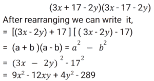 (3𝓍 + 17 - 2y) (3𝓍 - 17 - 2y)