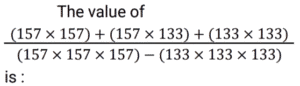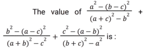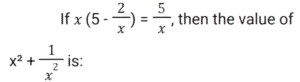 Algebra (SSC) (Part-4)Total Questions: 5011. Solve the following equation: [SSC CPO 03/10/2023 (2nd Shift)] (a)(b)(c)(d)Correct Answer: (c)12. Solve the following equation: [SSC CPO 03/10/2023 (3rd Shift)](a) 3/10(b) 2/5(c) 1/10(d) 1/5Correct Answer: (d) 1/513. Solve the following equation: [SSC CPO 03/10/2023 (3rd Shift)](a) 54/23(b) 53/28(c) 53/27(d) 54/25Correct Answer: (d) 54/2514. Solve the following equation: [SSC CPO 04/10/2023 (2nd Shift)](a) 24(b) 1/290(c) 290(d) 1/24Correct Answer: (d) 1/2415. Simplify the given expression. [SSC CPO 04/10/2023 (2nd Shift)](a) 2.508(b) 4.508(c) 2.146(d) 3.156Correct Answer: (a) 2.50816. Solve the following equation: [SSC CPO 04/10/2023 (3rd Shift)](a) 3(b) −1(c) 1(d) 2Correct Answer: (c) 117. Simplify the given expression. [SSC CPO 04/10/2023 (3rd Shift)](1 + 𝓍)³ + (1 - 𝓍)³ + (- 2)³(a) 3(1 - x²)(b) 6(1 - x²)(c) -6(1 - x²)(d) - 3(1 - x²)Correct Answer: (c) -6(1 - x²)18. Simplify the given expression. [SSC CPO 05/10/2023 (1st Shift)](1 - 2𝓍)² - (1 + 2𝓍)²(a) - 8𝓍(b) 8𝓍(c) 2 + 8𝓍(d) -(2 + 8𝓍)Correct Answer: (a) - 8𝓍19. If a + b + c = 5 and ab + bc + ca = 7, then the value of a³ + b³ + c³ - 3abc is: [SSC CPO 05/10/2023 (1st Shift)](a) 20(b) 25(c) 15(d) 30Correct Answer: (a) 2020. Simplify the given expression. [SSC CPO 05/10/2023 (3rd Shift)](x - 2y)(y - 3x) + (x + y)(x - y) + (x - 3y)(2x + y)(a) 2x(x - 3y)(b) 2y(x + 3y)(c) 2x(x + 3y)(d) 2y(x - 3y)Correct Answer: (d) 2y(x - 3y)Submit Quiz« Previous12345Next »