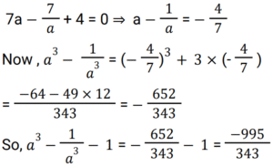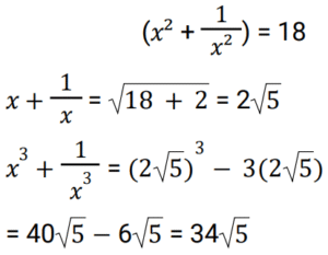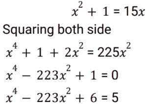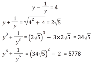 Algebra (SSC) (Part-6)Total Questions: 5011. If (a - b) = 1 then what is the value of (a³ - b³) ? [SSC CGL 21/07/2023 (4th shift)](a) a² + ab + b²(b) (a + b)² + 3ab(c) a² - ab + b²(d) a² + 2ab + b²Correct Answer: (a) a² + ab + b²Solution:12. Simplify the following expression. [SSC CGL 21/07/2023 (4th shift)](a) 36√5(b) 40√5(c) 46√5(d) 34√5Correct Answer: (d) 34√5Solution:13. Solve the following equation: [SSC CGL 24/07/2023 (1st shift)](a) 1(b) 2(c) 0(d) 3Correct Answer: (a) 1Solution: 14. Solve the following equation: [SSC CGL 24/07/2023 (3rd shift)] (a)(b)(c)(d)Correct Answer: (c)Solution:15. Solve this:- [SSC CGL 24/07/2023 (4th shift)](a) 1(b) x + y + z(c) 2(d) 1/2Correct Answer: (a) 1Solution:16. Solve the following equation: [SSC CGL 25/07/2023 (1st shift)](a) 5774(b) 4096(c) 577(d) 5778Correct Answer: (d) 5778Solution:17. If x² - 15x + 1 = 0, what is the value of x⁴ - 223x² + 6? [SSC CGL 25/07/2023 (1st shift)](a) 9(b) 5(c) 6(d) 0Correct Answer: (b) 5Solution:18. Solve the following equation: [SSC CGL 25/07/2023 (2nd shift)](a) 1(b) -1(c) 5(d) -5Correct Answer: (a) 1Solution:19. Simplify: [SSC CGL 25/07/2023 (2nd shift)](a) 5(b) 1/20(c) 1/5(d) 2/5Correct Answer: (c) 1/5Solution:20. Solve it:- [SSC CGL 25/07/2023 (2nd shift)] (a)(b)(c)(d)Correct Answer: (a)Solution:Submit Quiz« Previous12345Next »
