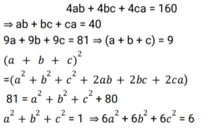 10. If 9a + 9b + 9c = 81 and 4ab + 4bc + 4ca = 160, then what is the value of 6a² + 6b² + 6c² ? [SSC CHSL 14/03/2023 (4th Shift)]