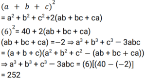 9. If a + b + c = 6 and a² + b² + c² = 40. then what is the value of a³ + b³ + c³ - 3abc ? [SSC CHSL 14/03/2023 (3rd Shift)]