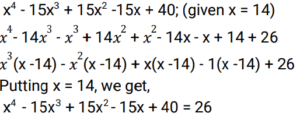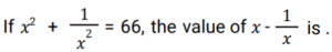 Algebra (SSC) (Part-8)Total Questions: 5031. What is the value of (a + b)3 - a³ + b³ ? [SSC CGL 09/12/2022 (1st Shift)](a) -3ab(a - b) + 2b³(b) 3ab(a + b) + 2b³(c) 3ab(a - b) b³(d) -3ab(a + b) + b³Correct Answer: (b) 3ab(a + b) + 2b³Solution:32. Solve the following equation: [SSC CGL 09/12/2022 (2nd Shift)](a) 10(b) 8(c) 9(d) 6Correct Answer: (b) 8Solution:33. Solve the following equation: [SSC CGL 09/12/2022 (3rd Shift)](a) 1562(b) 1432(c) 1442(d) 1444Correct Answer: (c) 1442Solution:34. Simplify x⁴ - 15x³ + 15x² - 15x + 40; given x = 14. [SSC CGL 09/12/2022 (3rd Shift)](a) 0(b) 40(c) 14(d) 26Correct Answer: (d) 26Solution:35. Solve the following equation: [SSC CGL 09/12/2022 (4th Shift)](a) 345√13(b) 360√13(c) 352√13(d) 368√13Correct Answer: (b) 360√13Solution:36. Solve the following equation: [SSC CGL 09/12/2022 (4th Shift)](a) 6√2(b) 8√3(c) 6√3(d) 8√2Correct Answer: (b) 8√3Solution:37. a³ + b³ + c³ = 3abc if ______. [SSC CGL 09/12/2022 (4th Shift)](a) a + b + c = - 3(b) a + b + c = 0(c) a + b + c = 1(d) a + b + c = - 1Correct Answer: (b) a + b + c = 0Solution:38. Solve the following equation: [SSC CGL 12/12/2022 (1st Shift)](a) - 2(b) 4(c) 0(d) 2Correct Answer: (d) 2Solution:39. Solve the following equation: [SSC CGL 12/12/2022 (1st Shift)](a) 86/25(b) 43/12(c) 81/10(d) 86/11Correct Answer: (a) 86/25Solution:40. If a = 26 and b = 22, then the value of : [SSC CGL 12/12/2022 (1st Shift)](a) 5/3(b) 13/11(c) 1/3(d) 11/13Correct Answer: (c) 1/3Solution:Submit Quiz« Previous12345Next »