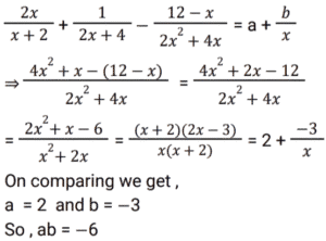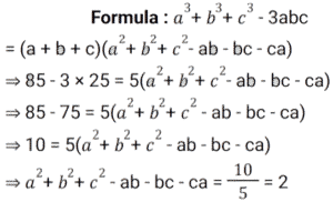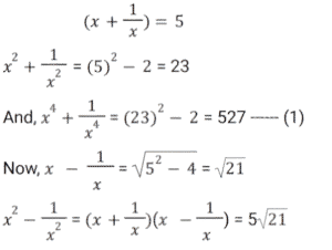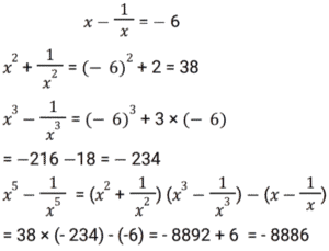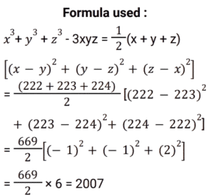 Algebra (SSC)Total Questions: 5021. Find the answer of given equation? [SSC CGL 18/07/2023 (3rd shift)](a) 60605√21(b) 60615√21(c) 60705√21(d) 60725√21Correct Answer: (a) 60605√21Solution: 22. Solve the equation ? [SSC CGL 18/07/2023 (2nd shift)](a) - 8898(b) - 8896(c) - 8886(d) - 8892Correct Answer: (c) - 8886Solution:23. Solve the equation ? [SSC CGL 17/07/2023 (1st shift)](a) 3√5(b) - 4√3(c) - 4√3(d) - 3√5Correct Answer: (d) - 3√5Solution:24. Solve the equation ? [SSC CGL 14/07/2023 (4th shift)](a) 717√2(b) 723√2(c) 720√2(d) 726√2Correct Answer: (a) 717√2Solution:25. Find the value of ab ? [Graduate Level 27/06/2023 (Shift - 4)](a) 3(b) -6(c) 6(d) -3Correct Answer: (b) -6Solution:26. Solve the equation ? [SSC CHSL 20/03/2023 (2nd Shift)](a) 1(b) 0(c) 3(d) 6Correct Answer: (b) 0Solution: 27. For what value of m will the system of equations 17x + my + 102 = 0 and 23x + 299y + 138 = 0 have an infinite number of solutions? [SSC CGL Tier II (02/03/2023)](a) 221(b) 223(c) 220(d) 219Correct Answer: (a) 221Solution:28. If a + b + c = 5, a³ + b³ + c³ = 85 and abc = 25, then find the value of a² + b² + c² - ab - bc - ca. [SSC CGL 13/12/2022 (4th Shift)](a) 2(b) 4(c) 6(d) 8Correct Answer: (a) 2Solution:29. If α , β are the roots of 6x² + 13x + 7 = 0, then the equation whose roots are α² , β² is: [SSC CGL 12/12/2022 (4th Shift)](a) 36𝓍² - 87x + 49 = 0(b) 36𝓍² - 85x + 49 = 0(c) 36𝓍² - 85x - 49 = 0(d) 36𝓍² + 87x - 49 = 0Correct Answer: (b) 36𝓍² - 85x + 49 = 0Solution:30. If x = 222, y = 223 and z = 224, then find the value of 𝓍³ + y³ + z³ -3xyz. [SSC CGL 12/12/2022 (4th Shift)](a) 2007(b) 2004(c) 2006(d) 2005Correct Answer: (a) 2007Solution:Submit Quiz« Previous12345Next »
