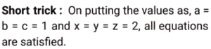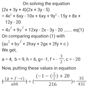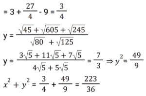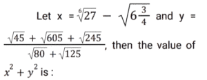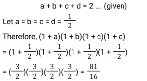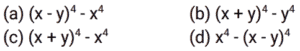 Algebra (SSC)Total Questions: 5041. If a + b + c + d = 2, then the maximum value of — (1 + a) (1 + b) (1 + c) (1 + d) [SSC CHSL 18/03/2020 (Afternoon)](a) 91/9(b) 81/16(c) 63/22(d) 54/13Correct Answer: (b) 81/16Solution:42. The coefficient of x² in (2x + y)³ is: [SSC CGL 05/03/2020 (Evening)](a) 12y²(b) 12(c) 12y(d) 8Correct Answer: (c) 12ySolution:43. Solve the equation ? [SSC CGL 03/03/2020 (Morning)](a) 3(b) 3ac(c) 3bc(d) 3abCorrect Answer: (a) 3Solution: 44. Solve the equation ? [SSC CPO 11/12/2019 (Evening)](a) 5.146(b) 51.46(c) 0.05146(d) 0.5146Correct Answer: (c) 0.05146Solution:45. Solve the equation ? [SSC CPO 09/12/2019 (Evening)](a) 4.1(b) 4.2(c) 1.2(d) 3.7Correct Answer: (d) 3.7Solution:46. If (2x + 3y + 4)(2x +3y - 5) is equivalent to (ax² + by² + 2hxy + 2gx + 2fy + c ), then what is the value of {(g + f - c )/abh} [SSC CPO 09/12/2019 (Morning)](a)(b)(c)(d)Correct Answer: (a)Solution:47. (4𝓍³y - 6𝓍²y² + 4xy³ - y⁴) can be expressed as: [SSC CPO 09/12/2019 (Morning)](a)(b)(c)(d)Correct Answer: (d)Solution:48. Solve the equation ? [SSC CGL TIER II (13/09/2019)] (a)(b)(c)(d)Correct Answer: (a)Solution: 49. Solve the equation ? [SSC CGL TIER II (11/09/2019)](a) 8.4(b) 8.2(c) 7.8(d) 7.2Correct Answer: (c) 7.8Solution:50. Solve the equation ? [SSC CHSL 11/07/2019 (Evening)] (a)(b)(c)(d)Correct Answer: (a)Solution:Submit Quiz« Previous12345