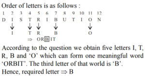 1. If it is possible to make only one meaningful word from the second, fourth, fifth, seventh and eleventh letters of the word ‘Distribution’, third letter of that word is your answer. If more than one such word can be formed your answer is ‘M’and if no such word can be formed your answer is ‘X’