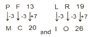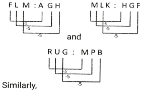 Analogy – Railway reasoning part IIITotal Questions: 5031. Select the set in which the numbers are related in the same way as are the numbers of the following sets. [Group-D 01/09/2022 (Afternoon)](NOTE: Operations should be performed on the whole numbers, without breaking down the numbers into its constituent digits.) (13, 182, 91) (17, 306, 153)(a) 15, 200, 125(b) 9, 125, 50(c) 8, 72, 36(d) 11, 154, 67Correct Answer: (c) 8, 72, 36Solution:let first number n the (n, n x (n + 1), second number x 0.5)= third number (13, 182, 91) here 13 x 14 = 182 and 182 × 0.5 = 91 (17,306, 153) here 17 x 18 = 306 and 306 × 0.5 = 153 Similarly, (8, 72, 36) here 8 x 9 = 72 and 72 × 0.5 = 3632. In the given letter-cluster pairs, the first letter-cluster is related to the second letter-cluster following a certain logic. Study the given pairs carefully, and from the given options, select the pair that follows the same logic. [Group-D 01/09/2022 (Afternoon)]ASD : EWH FGH : JKL(a) GYU: JCY(b) JKL: NOP(c) NSP: ORQ(d) CBH: GFMCorrect Answer: (b) JKL: NOPSolution:ASD : EWH FGH : JKL Add (4) to each alphabet JKL : NOP33. Select the option that is related to the fifth number in the same way as the second number is related to the first number and the fourth number is related to the third number. [Group-D 01/09/2022 (Evening)]13 : 31 :: 15 : 33 :: 20 : ?(a) 40(b) 36(c) 32(d) 38Correct Answer: (d) 38Solution:13+18 = 31; 15+ 18 = 33; Similarly, 20 + 18 = 3834. Select the set in which the numbers are related in the same way as are the numbers of the following sets. [Group-D 02/09/2022 (Afternoon)](NOTE: Operations should be performed on the whole numbers, without breaking down the numbers into its constituent digits.) (33, 56) (44, 67)(a) (5, 28)(b) (11,36)(c) (7, 38)(d) (12, 36)Correct Answer: (a) (5, 28)Solution:(a, a + 23) i.e. 33, (33 + 23) = 56 44, (44 + 23) = 67 Similarly, 5, (5 + 23) = 2835. Select the option that is related to the fifth number in the same way as the second number is related to the first number and the fourth number is related to the third number. [Group-D 05/09/2022 (Morning)]59 : 45 : 46 : 24 :: 85 : ?(a) 38(b) 35(c) 44(d) 40Correct Answer: (d) 40Solution:(59 : 45) ⇒ 59 ⇒ 5 × 9 = 45 (46 : 24) ⇒ 46 ⇒ 4 x 6 = 24 similarly (85 : ?) ⇒ 85 ⇒ 8 x 5 = 4036. PF 13 is related to MC 20 in a certain way. In the same way. LR 19 is related to 10 26. To which of the following is XJ 25 related following the same logic? [Group-D 05/09/2022 (Afternoon)](a) UG 33(b) UG 32(c) GU 32(d) VG 32Correct Answer: (b) UG 32Solution:From the above sequence we can say XJ25 is related to UG3237. In the given letter-cluster pairs, the first letter-cluster is related to the second letter-cluster following a certain logic. Study the given pairs carefully, and from the given options, select the pair that follows the same logic. [Group-D 05/09/2022 (Evening)]FLM : AGH :: MLK : HGF(a) TED: PZX(b) FIN: ACJ(c) RUG: MPB(d) MAP: HWLCorrect Answer: (c) RUG: MPBSolution:38. Select the option that is related to the fifth number in the same way as the second number is related to the first number and the fourth number is related to the third number. [Group-D 05/09/2022 (Evening)]72 : 90 :: 110 : 132 :: 156 : ?(a) 192(b) 182(c) 190(d) 180Correct Answer: (b) 182Solution:(72 : 90) ⇒ 8 × 9 = 72 and 9 x 10 = 90 (110 : 132) ⇒ 10 x 11 = 110 and 11 x 12 = 132 Similarly, (156 : 182) ⇒ 12 x 13 = 156 and 13 x 14 = 18239. Select the set in which the numbers are related in the same way as are the numbers of the following sets. [Group-D 05/09/2022 (Evening)](NOTE: Operations should be performed on the whole numbers, without breaking down the numbers into its constituent digits.) (15, 360, 12) (12, 120, 5)(a) (15, 20, 30)(b) (14,84,3)(c) (13, 42, 3)(d) (12, 4, 16)Correct Answer: (b) (14,84,3)Solution:Twice of (1st number × 3rd number) = 2nd number Here, 2 x 15 x 12 = 360 2 x 12 x 5 = 120 Therefore, 2 x 14 x 3 = 8440. Select the option that is related to the fifth number in the same way as the second number is related to the first number and the fourth number is related to the third number. [Group-D 06/09/2022 (Morning)](NOTE: Operations should be performed on the whole numbers, without breaking down the numbers into its constituent digits.) 17 : 26 :: 5: 14 :: 22 : ?(a) 35(b) 37(c) 31(d) 33Correct Answer: (c) 31Solution:{first num + 9} = second number So, (17 : 26) ⇒ {17 + 9} = 26 (5 : 14) ⇒ {5 + 9} = 14 Similarly, (22 : 31) ⇒ {22 + 9} = 31Submit Quiz« Previous12345Next »