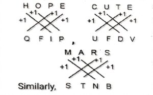 Analogy (SSC Selection Post {Phase- XI})Total Questions: 3421. Select the option that is related to the third word in the same way as the second word is related to the first word. [Matriculation Level 28/06/2023 (Shift - 1)](The words must be considered as meaningful English words and must NOT be related to each other based on the number of letters/number of consonants/vowels in the word.)Escape : Abscond :: Idea : ?(a) Squander(b) Empty(c) Notion(d) ArtificialCorrect Answer: (c) NotionSolution:The logic followed here is :As Escape is synonymous with AbscondSimilarly,Idea is synonymous with Notion.Hence, "Notion" is the correct answer.22. Select the option that is related to the fourth term in the same way as the first term is related to the second term and the fifth term is related to the sixth term. [Matriculation Level 28/06/2023 (Shift - 1)]9 : 126 :: ? : 21 :: 294(a) 18(b) 28(c) 17(d) 22Correct Answer: (c) 17Solution:The pattern followed here is :1st number × 14 = 2nd number(9 : 126) → 9 × 14 = 126(21 : 294) → 21 × 14 = 294Similarly,(x : 238) → x × 14 = 238⇒ x = 238 ÷ 14⇒ x = 17Hence, "17" is the correct answer.23. Select the option that is related to the fifth term in the same way as the second term is related to the first term and the fourth term is related to the third term. [Matriculation Level 28/06/2023 (Shift - 1)]FLIGHT : GHIFLT :: PERIOD : IORPED :: GARLIC : ?(a) LIRGCA(b) LIRGAC(c) RILACG(d) RILAGCCorrect Answer: (b) LIRGACSolution:The pattern followed here is :Hence, "LIRGAC" is the correct answer.24. Select the option that is related to the fourth term in the same way as the first term is related to the second term and the fifth term is related to the sixth term. [Matriculation Level 28/06/2023 (Shift - 4)](a) 18(b) 21(c) 20(d) 19Correct Answer: (d) 19Solution:The pattern followed here is :(1st number)² + 9 = 2nd number(7 : 58) → 7² + 9 ⇒ 49 + 9 = 58(12 : 153) → 12² + 9 ⇒ 144 + 9 = 153Similarly,(? : 370) → 19² + 9 ⇒ 361 + 9 = 370Hence, "19" is the correct answer.25. Select the option that is related to the fourth term in the same way as the first term is related to the second term and the fifth term is related to the sixth term. [Matriculation Level 28/06/2023 (Shift - 4)]28 : 841 :: ? : 324 :: 2 : 9(a) 22(b) 7(c) 19(d) 17Correct Answer: (d) 17Solution:The pattern followed here is :(1st number + 1)² = 2nd number(28 : 841) → (28 + 1)² ⇒ 29² = 841(2 : 9) → (2 + 1)² ⇒ 3² = 9Similarly,(? : 324) → (17 + 1)² ⇒ 18² = 324Hence, "17" is the correct answer.26. Select the option that is related to the fifth term in the same way as the second term is related to the first term and the fourth term is related to the third term. [Matriculation Level 28/06/2023 (Shift - 4)]HISTORY : HIOTSRY :: FEATURE : FEUTARE :: JOURNAL : ?(a) JORUNAL(b) JORNUAL(c) JONRUAL(d) JOURNALCorrect Answer: (c) JONRUALSolution:The pattern followed here is :Hence, "JONRUAL" is the correct answer.27. Select the option that is related to the third word in the same way as the second word is related to the first word. [Matriculation Level 30/06/2023 (Shift - 3)](The words must be considered as meaningful English words and must NOT be related to each other based on the number of letters/number of consonants/vowels in the word.)Anthropology : Human :: Conchology : ?(a) Shells(b) Skull(c) Soil(d) NamesCorrect Answer: (a) ShellsSolution:The logic followed here is :Study of Human is known as AnthropologySimilarly,The study of shells is known as Conchology.Hence, "Shells" is the correct answer.28. Select the option that is related to the fifth term in the same way as the second term is related to the first term and the fourth term is related to the third term. [Matriculation Level 30/06/2023 (Shift - 3)]HOPE : QFIP :: CUTE : UFDV :: MARS : ?(a) SRAM(b) TQLB(c) RSMA(d) STNBCorrect Answer: (d) STNBSolution:The pattern followed here is :Hence, "STNB" is the correct answer.29. Select the option that is related to the third word in the same way as the second word is related to the first word. [Matriculation Level 30/06/2023 (Shift - 3)](The words should be treated as meaningful Hindi words and should not be related to each other on the basis of number of letters/consonants/vowels in the word.)Lethargy : Alertness :: Gradual : ?(a) Destroy(b) Mourn(c) Shallow(d) AbruptCorrect Answer: (d) AbruptSolution:The logic followed here is :Lethargy is antonym of AlertnessSimilarly,Gradual is antonym of Abrupt.Hence, "Abrupt" is the correct answer.30. Select the option that is related to the third term in the same way as the second term is related to the first term and the sixth term is related to the fifth term. [Matriculation Level 30/06/2023 (Shift - 3)]7 : 1000 :: 4 : ? : 1728(a) 344(b) 340(c) 343(d) 348Correct Answer: (c) 343Solution:The pattern followed here is :(1st number + 3)³ = 2nd number(7 : 1000) → (7 + 3)³ ⇒ (10)³ = 1000(9 : 1728) → (9 + 3)³ ⇒ (12)³ = 1728Similarly,(4 : ?) → (4 + 3)³ ⇒ (7)³ = 343Hence, "343" is the correct answer.Submit Quiz« Previous1234Next »
