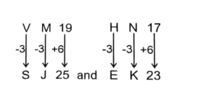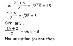 Analogy – Railway reasoningTotal Questions: 5021. Select the set in which the numbers are related in the same way as are the numbers of the following sets. [Group-D 29/08/2022 (Evening)](NOTE: Operations should be performed on the whole numbers, without breaking down the numbers into its constituent digits.) (3, 5, 21) (4, 2, 14)(a) (6, 3, 12)(b) (8, 4, 28)(c) (5, 2, 19)(d) (7, 1, 23)Correct Answer: (b) (8, 4, 28)Solution:22. Select the set in which the numbers are related in the same way as are the numbers of the following sets. [Group-D 30/08/2022 (Evening)](NOTE: Operations should be performed on the whole numbers, without breaking down the numbers into its constituent digits.) (21, 225, 9) (4, 25, 6)(a) (13, 81, 6)(b) (11, 18, 7)(c) (14, 64, 2)(d) (15, 54, 3)Correct Answer: (c) (14, 64, 2)Solution:23. Select the option that is related to the fifth number in the same way as the second number is related to the first number and the fourth number is related to the third number. [Group D 30/08/2022 (Evening)]13 : 234 :: 9 : 126 :: 7 : ?(a) 126(b) 98(c) 84(d) 106Correct Answer: (c) 84Solution:24. HARKED is related to RAHDEK in a certain way. In the same way, RACIAL is related to CARLAI To which of the following is NIMBLE related, following the same logic? [Group-D 01/09/2022 (Evening)](a) MINLEB(b) NIMELB(C) MINELB(d) NIMLEBCorrect Answer: (C) MINELBSolution:25. Select the option that is related to the fifth letter-cluster in the same way as the second letter-cluster is related to the first letter-cluster and the fourth letter-cluster is related to the third letter-cluster. [Group-D 02/09/2022 (Morning)]BFHN : HBDI :: DHFM : JDBH :: FSWL : ?(a) LOSG(b) KPSH(c) KOTF(d) LPSFCorrect Answer: (a) LOSGSolution:26. Select the option that is not related to the fifth number in the same way as the second number is related to the first number, and the fourth number is related to the third number. [Group-D 06/09/2022 (Afternoon)]40 : 45 :: 68 : 77 :: 104 ?(a) 119(b) 121(c) 115(d) 117Correct Answer: (d) 117Solution:27. 15 PK is related to 225 SQ in a certain way. 16 TQ is related to 256 WW in the same manner. Following the same logic, 14 OK is related to which of the following? [Group-D 06/09/2022](a) 198 RQ(b) 196 RQ(c) 56 RQ(d) 196RRCorrect Answer: (b) 196 RQSolution:28. Select the option that is related to the fifth number in the same way as the second number is related to the first number and the fourth number is related to the third number. [Group-D 08/09/2022 (Afternoon)](NOTE: Operations should be performed on the whole numbers, without breaking down the numbers into its constituent digits.) 13 : 195 :: 2 : 8 :: 12 : ?(a) 48(b) 168(c) 180(d) 24Correct Answer: (b) 168Solution:29. VM 19 is related to SJ 25 in a certain way. In the same way, HN 17 is related to EK 23. To which of the following is SL 15 related following the same logic? [Group-D 09/09/2022 (Afternoon)](a) MQ 24(b) QI 21(c) RJ 19(d) PI 21Correct Answer: (d) PI 21Solution:30. Select the option in which the numbers are related in the same way as are the numbers of the given sets. [Group-D 09/09/2022 (Evening)](NOTE: Operations should be performed on the whole numbers without breaking down the numbers into its constituent digits.) (4, 13, 3) (4, 19, 5)(a) (18, 28, 2)(b) (6, 14, 2)(c) (1,25, 8)(d) (5, 30, 7)Correct Answer: (c) (1,25, 8)Solution:Submit Quiz« Previous12345Next »