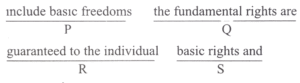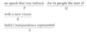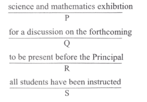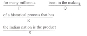 (Antonyms) Part – A : English (NDA/NA SOLVED PAPER 2024 – I) (01 to 50)Total Questions: 5031. Select the correct sequence as (a), (b), (c), and (d) given below and mark your response on the answer sheet accordingly.(a) QSPR(b) QRSP(c) SQRP(d) RQSPCorrect Answer: (a) QSPRSolution:The correct sentence formed will be- "The fundamental rights are basic rights and include basic freedoms guaranteed to the individual."32. Select the correct sequence as (a), (b), (c), and (d) given below and mark your response on the answer sheet accordingly.(a) SRQP(b) SQPR(c) PRSQ(d) RSQPCorrect Answer: (a) SRQPSolution:The correct sentence formed will be- "The Indian nation is the product of a historical process that has been in the making for many millennia."33. Select the correct sequence as (a), (b), (c), and (d) given below and mark your response on the answer sheet accordingly.(a) SQPR(b) SQPR(c) PRSQ(d) RSQPCorrect Answer: (a) SQPRSolution:The correct sentence formed will be- "India's Independence represented for its people the start of an epoch that was imbued with a new vision."34. Select the correct sequence as (a), (b), (c), and (d) given below and mark your response on the answer sheet accordingly.(a) SQPR(b) RPQS(c) SRQP(d) QPRSCorrect Answer: (c) SRQPSolution:The correct sentence formed will be- "All students have been instructed to be present before the principal for a discussion on the forthcoming science and mathematics exhibition."35. Select the correct sequence as (a), (b), (c), and (d) given below and mark your response on the answer sheet accordingly.(a) QPRS(b) SQRP(c) RQSP(d) RPSQCorrect Answer: (c) RQSPSolution:The correct sentence formed will be- "With the selection of another player to the new team, the team now has two bowlers and two batsmen respectively."36. Read the sentence carefully and find which word class the underlined word belongs to. Indicate your response on the Answer Sheet accordingly.You are most welcome to visit my humble abode.(a) Noun(b) Adjective(c) Adverb(d) ParticipleCorrect Answer: (a) NounSolution:In this sentence, the word 'abode' is a noun. It refers to a residence, dwelling or habitat.37. Read the sentence carefully and find which word class the underlined word belongs to. Indicate your response on the Answer Sheet accordingly.The situation is beyond our control.(a) Adjective(b) Adverb(c) Conjunction(d) PrepositionCorrect Answer: (d) PrepositionSolution:The word, 'beyond' is used as an adverb in this sentence.38. Read the sentence carefully and find which word class the underlined word belongs to. Indicate your response on the Answer Sheet accordingly.I didn't tell him anything except that I needed the money.(a) Adjective(b) Adverb(c) Preposition(d) ConjunctionCorrect Answer: (d) ConjunctionSolution:In the above mentioned sentence, 'except' acts as a39. Read the sentence carefully and find which word class the underlined word belongs to. Indicate your response on the Answer Sheet accordingly.He dry-cleaned my coat nicely.(a) Adjective(b) Adverb(c) Relative pronoun(d) ConjunctionCorrect Answer: (b) AdverbSolution:In the given sentence, 'nicely' is used as an adverb.40. Read the sentence carefully and find which word class the underlined word belongs to. Indicate your response on the Answer Sheet accordingly.Would you like to buy this new item ?(a) Determiner(b) Conjunction(c) Interjection(d) AdjectiveCorrect Answer: (a) DeterminerSolution:In the given sentence, 'this' has been used as a demonstrative determiner.Submit Quiz« Previous12345Next »