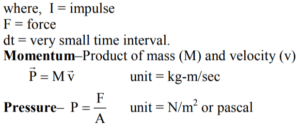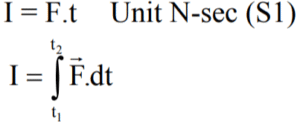 Impulse–The product of force (F) and time (t) is called as impulse that represents the time interval in which a large amount of force acts on a body.