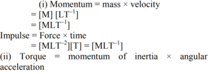 • The dimension of the moment of a force and angular moment are not is same in the given dimensions.