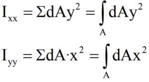 • Moment of inertia (2nd moment of area)– Moment of inertia is a quantity which expresses the body's tendency to resist external angular acceleration, which can calculated as the sum of the products of the mass of the each particle of the body with the square of its distance from the axis along which it is to be rotated.