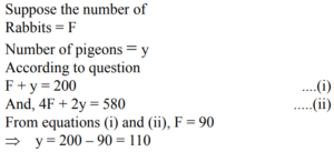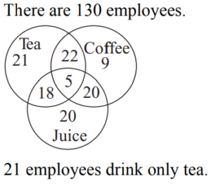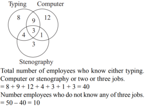 ARITHMETICAL REASONING (General Mental Ability) UPSC EPFOTotal Questions: 2411. A book has 300 pages and each page has 20 lines of 10 words each. How many words are there in the book altogether?(a) 6000(b) 60000(c) 66000(d) 600000Correct Answer: (b) 60000Solution:Total number of words = 300 × 20 × 10 = 6000012. In a joint family, there are father, mother, four married sons and two unmarried daughters. Three sons have 2 daughters each and one has a son. How many female members are there in the family?(a) 13(b) 8(c) 11(d) 12Correct Answer: (a) 13Solution:Mother = 1 Wives = 4 Unmarried daughters = 2 Total number of female members = 1 + 4 + 2 + 6 = 1313. The average of 6 numbers is 40. If each of the first three numbers is increased by 4 and each of the remaining three numbers is decreased by 6, then the new average is(a) 168(b) 158(c) 79(d) 89Correct Answer: (c) 79Solution:14. The average of 6 numbers is 40. If each of the first three numbers is increased by 4 and each of the remaining three numbers is decreased by 6, then the new average is(a) 36(b) 30(c) 39(d) 42Correct Answer: (c) 39Solution:15. If 4 cats can kill 4 rats in 4 minutes, how many minutes will it take 8 cats to kill 8 rats?(a) 8(b) 4(c) 2(d) 16Correct Answer: (b) 4Solution:4 cats can kill 4 rats in 4 minutes. So, 8 cats can kill 8 rats in 4 minutes.16. An official meeting is attended by 130 department employees, of them, 66 drink tea, 56 drink coffee and 63 drink juice, 27 can drink either tea or coffee, 25 can drink coffee or juice and 23 can drink juice and tea. 5 employees can drink all of the three. How many drink only tea?(a) 21(b) 22(c) 18(d) 20Correct Answer: (a) 21Solution:17. In a department, 24 employees know typing and 11 employees know stenography, 25 employees know to use a computer, 7 employees know both typing and stenography, 4 employees know stenography and computers and 3 employees know all the three. If there were 50 employees in the department, find how many employees don’t know none of the three jobs.(a) 40(b) 10(c) 47(d) 33Correct Answer: (b) 10Solution:18. In a class composed of x girls, y boys what part of the class is composed of girls?(a)(b)(c)(d)Correct Answer: (c)Solution:19. In a row, 25 trees are planted at equal distance from each other. The distance from each other. The distance between 1st and 25th tree is 30 m. What is the distance between 3rd and 15th tree?(a) 8m(b) 15m(c) 16m(d) 18mCorrect Answer: (b) 15mSolution:20. In a zoo, there are Rabbits and Pigeons. If heads are counted, there are 200 and if legs are counted, there are 580. How many pigeons are there?(a) 90(b) 100(c) 110(d) 120Correct Answer: (c) 110Solution:Submit Quiz« Previous123Next »