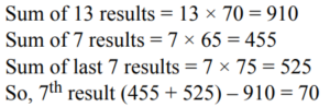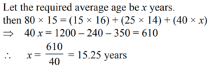 AVERAGE AND AGES (QUANTITATIVE APTITUDE) EPFO UPSCTotal Questions: 3021. The average of 13 results is 70. The average of first seven is 65 and that of the last seven is 75, the seventh result is :(a) 70(b) 70.5(c) 68(d) 67Correct Answer: (a) 70Solution:22. The average of 9 observations was found to be 35. Later on, it was detected that an observation 81 was misread as 18. The correct average of the observations is(a) 28(b) 42(c) 32(d) 45Correct Answer: (b) 42Solution:23. The average of 5 numbers is 306.4. The average of the first two numbers is 431 and the average of the last two numbers is 214.5. What is the third number?(a) 108(b) 52(c) 321(d) None of theseCorrect Answer: (d) None of theseSolution:24. Kamlesh bought 65 books for ₹ 1,050 from one shop and 50 books for ₹ 1,020 from another. What is the average price he paid per book?(a) ₹ 36.40 (b) ₹ 18.20(c) ₹ 24 (d) ₹ 18Correct Answer: (d) ₹ 18Solution:25. The total marks obtained by a student in Physics, Chemistry and Mathematics together is 120 more than the marks obtained by him in Chemistry. What are the average marks obtained by him in Physics and Mathematics together?(a) 60(b) 120(c) 40(d) Cannot be determinedCorrect Answer: (a) 60Solution:26. The average age of 80 boys in a class is 15 years. The average age of a group of 15 boys in the class is 16 years and the average age of another 25 boys in the class is 14 years. What is the average age of the remaining boys in the class?(a) 15.25 years(b) 14 years(c) 14.75 years(d) Cannot be determinedCorrect Answer: (a) 15.25 yearsSolution:27. The average marks in English subject of a class of 24 students is 56. If the marks of three students were misread as 44, 45 and 61 of the actual marks 48, 59 and 67 respectively, then what would be the correct average?(a) 56(b) 55(c) 57.5(d) None of theseCorrect Answer: (d) None of theseSolution:28. The sum of the present ages of P and Q is 25 years more than the age of R. The present age of Q is 5 years more than that of R. Find the present age of P.(a) 20 years(b) 25 years(c) 21 years(d) 22 yearsCorrect Answer: (a) 20 yearsSolution:29. The average of four consecutive even numbers P, Q, R and S respectively (in increasing order) is 51. What is the product of P and R?(a) 2592(b) 2400(c) 2600(d) None of theseCorrect Answer: (d) None of theseSolution:30. The average height of 27 persons was recorded as 162 cm. If the height of Shreya was deleted from the observation, the average height reduced by 1 cm. What was Shreya's height?(a) 184 cm.(b) 226 cm.(c) 179 cm.(d) None of theseCorrect Answer: (d) None of theseSolution:Height of Shreyas = 162 + 26 = 188 cmSubmit Quiz« Previous123