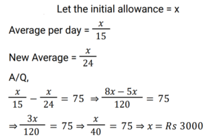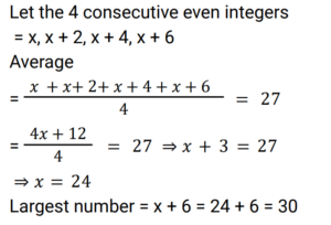 Average (Railway Maths) (Part – II)Total Questions: 5031. The mean of the first ten even natural numbers is: [RRB NTPC 20/01/2021 (Evening)](a) 10(b) 8(c) 11(d) 9Correct Answer: (c) 11Solution:32. The mean of the first twelve prime number is: [RRB NTPC 20/01/2021 (Evening)](a) 16.42(b) 12.00(c) 20.45(d) 10.50Correct Answer: (a) 16.42Solution:33. The marks obtained in a test by students of a class are given below: 23, 2, 15, 38, 21, 19, 24, 26 Scores of how many students are within a +2 / −2 range of the average score of the class? [RRB NTPC 21/01/2021 (Evening)](a) 4(b) 3(c) 1(d) 2Correct Answer: (b) 3Solution:34. If each entry of a piece of data is increased by 7, then the arithmetic mean: [RRB NTPC 22/01/2021 (Morning)](a) remains the same(b) decreases by 7(c) increases by 7(d) increases by 49Correct Answer: (c) increases by 7Solution:35. If the arithmetic mean of 16, 18, 15, 17, p and 14 is 17, then the value of p is: [RRB NTPC 22/01/2021 (Morning)](a) 23(b) 22(c) 21(d) 24Correct Answer: (b) 22Solution:36. Sonam was given some money to take care of her travel during a 15-day sales drive she had to undertake. However, she had to increase her stay by another 9 days and as a result her average daily travel allowance went down by Rs 75. What was the amount that was sanctioned to her in the beginning? [RRB NTPC 31/01/2021 (Morning) ](a) Rs 2,700(b) Rs 3,000(c) Rs 2,750(d) Rs 2,850Correct Answer: (b) Rs 3,000Solution:37. 18 years is the average age of 36 boys and their professor. The average becomes 17 years if we leave the professor out. What is the age (in years) of the professor? [RRB NTPC 01/02/2021 (Morning)](a) 34(b) 44(c) 64(d) 54Correct Answer: (d) 54Solution:38. The average of 5 students in a class test is 39.20 and the average of three of them is 41. What is the average of the remaining two students? [RRB NTPC 01/02/2021 (Evening)](a) 39.5(b) 37.5(c) 36.5(d) 38.5Correct Answer: (c) 36.5Solution:39. In a class of 100 students, the mean marks obtained in a certain subject is 25 and in another class of 50 students, the mean marks obtained in the same subject is 70. The mean marks obtained by the students of both classes taken together is: [RRB NTPC 03/02/2021 (Morning)](a) 30(b) 60(c) 40(d) 25Correct Answer: (c) 40Solution:40. The average of four consecutive even integers is 27, what is the largest of these numbers ? [RRB NTPC 11/02/2021 (Evening) ](a) 27(b) 96(c) 30(d) 24Correct Answer: (c) 30Solution:Submit Quiz« Previous12345Next »