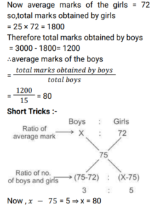 4. Out of 40 students, 15 are boys. In a test, the mean marks of the class is 75 and the average marks of the girls is 72. What is the average marks of boys ? [RRB JE 26/06/2019 (Evening) ]