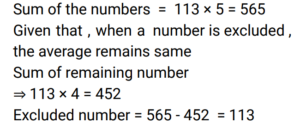 5. The average of 5 numbers is 113. Even after one number is excluded, the average remains the same. Find out the number dropped out of it. [RPF Constable 17/01/2019 (Morning)]