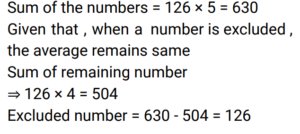 7. Five numbers have an average of 126. The average does not change even after a number is excluded. What is the value of the excluded number? [RPF Constable 17/01/2019 (Evening)]