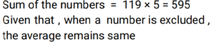 10. The average of 5 numbers is 119. One number is removed from the group but the average remains the same. Find out the removed number. [RPF Constable 18/01/2019 (Afternoon)]