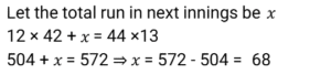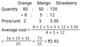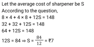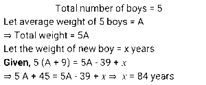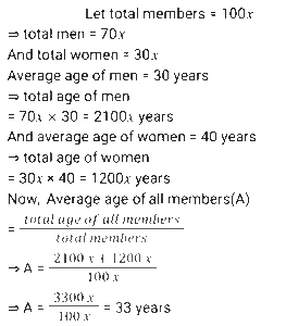 Average (SSC) (Part-3)Total Questions: 5031. The average age of all the students in a class is 18 years. The average age of the boys of the class is 19 years and of the girls is 14 years. If the number of girls in the class is 30, then what is the number of boys in the class? [Matriculation Level 20/06/2024 (Shift-4)](a) 100(b) 120(c) 140(d) 110Correct Answer: (b) 120Solution:32. The average of v numbers is w² and that of w numbers is v² Then the average of all the numbers is: [Matriculation Level 20/06/2024 (Shift-4)](a) vw²(b) v + w(c) vw(d) v² + w²Correct Answer: (c) vwSolution:33. At a fitness club, 70% of the members are men and 30% of the members are women. If the average age of the men is 30 years and that of the women is 40 years, then what is the average age of all the members? [Matriculation Level 21/06/2024 (Shift-1)](a) 38 years(b) 33 years(c) 35 years(d) 30 yearsCorrect Answer: (b) 33 yearsSolution:34. The average of runs of a cricket player in 12 innings was 42. How many runs must he make in his next innings to increase his average of runs by 2? [Matriculation Level 21/06/2024 (Shift-4)](a) 64(b) 68(c) 72(d) 78Correct Answer: (b) 68Solution:35. The average weight of 4 persons is increased by 14 kg when one of them whose weight is 55 kg, is replaced by another person. What is the weight (in kg) of the new person? [Matriculation Level 24/06/2024 (Shift-1)](a) 111(b) 85(c) 56(d) 98Correct Answer: (a) 111Solution:36. A packet has to consist of three types of jellies orange, mango and strawberry. The price per unit of orange, mango and strawberry jelly is ₹2.00, ₹3.00 and ₹3.50, respectively. In a packet, there are 80 orange jellies, 50 mango jellies and 120 strawberry jellies. What is the average cost (in ₹) of a jelly in a mixed packet? [Matriculation Level 24/06/2024 (Shift-4)](a) 2.80(b) 2.96(c) 2.92(d) 3.02Correct Answer: (c) 2.92Solution:37. The average cost of a pencil is ₹8 and the average cost of an eraser is ₹4. The cost of 8 erasers, 4 pencils and 12 sharpeners are ₹148. The average cost of a sharpener is ₹ ______ . [Matriculation Level 24/06/2024 (Shift-4)](a) 6.5(b) 6(c) 7(d) 6.66Correct Answer: (c) 7Solution:38. In nine games, A wins five games with score differences of 12, 3, 8, 4 and 1, while in the remaining four games, he loses with score differences of -4, -1, -2 and -3. The average score difference of A in all the nine games is: [Matriculation Level 26/06/2024 (Shift-1)](a) 2(b) 3(c) 4(d) 1Correct Answer: (a) 2Solution:39. The average temperature of a city for the first four days of the week is 25°C, and the average temperature for the last four days is 30°C. If the average temperature for the entire week is 27°C, then what is the temperature on the fourth day? [Higher Secondary 24/06/2024 (Shift-2)](a) 29°C(b) 31°C(c) 30°C(d) 28°CCorrect Answer: (b) 31°CSolution:40. The average weight of 5 boys is increased by 9 kg when one of them, whose weight is 39 kg, is replaced by another boy. What is the weight (in kg) of the new boy? [Higher Secondary 24/06/2024 (Shift-2)](a) 69(b) 65(c) 70(d) 84Correct Answer: (d) 84Solution:Submit Quiz« Previous12345Next »