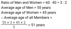 1. At a Yoga center, 60% of the members are men and 40% of the members are women. If the average age of the men is 55 years and the average age of the women is 45 years, then what is the average age (in years) of all the members? [SSC CHSL Tier II 02/11/2023]