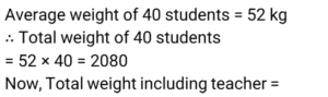 2. The average weight of 40 students of a school is 52 kg. If the weight of the teacher is included, the average weight rises by 500 grams. Find the weight (in kg) of the teacher. [SSC CHSL Tier II 02/11/2023]