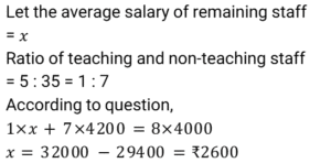 3. The average salary of all 40 employees, including 35 non-teaching staff members, of a school is ₹4,000. If the average salary of the non-teaching staff members is ₹4,200, find the average salary of the remaining staff of the school. [SSC CHSL Tier II 10/01/2024]