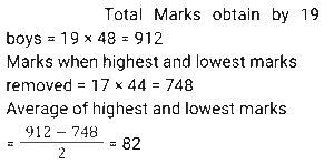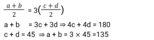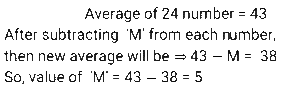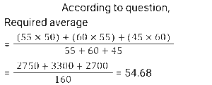 Average (SSC) (Part-4)Total Questions: 5031. In an examination of 7 papers of 100 marks each, there were 3 mathematics papers, 2 English papers and 2 Hindi papers. D gets average marks of 45, 55 and 60 in mathematics, English and Hindi, respectively. What are the average marks per paper? [SSC CGL 26/07/2023 (4th shift)](a) 56.5(b) 52.1(c) 55.6(d) 54.1Correct Answer: (b) 52.1Solution:32. The average weight of 30 students in a class is 60 kg. If the weight of the class teacher is included, the average increases by 0.5 kg. The weight (in kg) of the teacher is: [Graduate Level 27/06/2023 (Shift-4)](a) 76.5(b) 75.5(c) 72.5(d) 74.5Correct Answer: (b) 75.5Solution:Using deviation method, Weight of teacher = 60 + (31 × 0.5) = 75.5 kg.33. In a company, the total customer calls on Monday, Wednesday and Friday are 15,500 and the total calls on Tuesday and Thursday are 12,500. The average calls on Saturday and Sunday are 7,000. What are the average calls per day in a week? [Matriculation Level 28/06/2023 (Shift-1)](a) 6500(b) 7500(c) 7000(d) 6000Correct Answer: (d) 6000Solution:34. A class of 40 students took a mathematics test. 18 students had an average score of 75. The other students had an average score of 62. What is the average score of the entire class? [Matriculation Level 30/06/2023 (Shift-3)](a) 67.85(b) 72.52(c) 68.50(d) 69.85Correct Answer: (a) 67.85Solution:35. What is the average marks of all the students if the average marks of three batches of 55, 60, and 45 students is 50, 55, and 60, respectively? [Matriculation Level 30/06/2023 (Shift-4)](a) 51.23(b) 55.98(c) 57.42(d) 54.68Correct Answer: (d) 54.68Solution:36. The average of the square of first five even natural numbers is: [SSC CHSL Tier II (26/06/2023)](a) 40(b) 44(c) 42(d) 46Correct Answer: (b) 44Solution:37. Average marks obtained by 19 boys of a college is 48. If the highest marks and lowest marks obtained are removed, then the average reduces by 4. What is the average of the highest and lowest marks obtained? [SSC MTS 03/05/2023 (Afternoon)](a) 76(b) 80(c) 84(d) 82Correct Answer: (d) 82Solution:38. The average of 24 numbers is 43. If we subtract a number 'M' from each number, then the average becomes 38. What was the value of M? [SSC MTS 04/05/2023 (Morning)](a) 12(b) 5(c) 7(d) 10Correct Answer: (b) 5Solution:39. The average expenditure of Raman for 5 days is Rs. 160. If his expenditure for the first 4 days is Rs. 90, Rs. 135, Rs. 75 and Rs. 180 respectively, then what is his expenditure on the 5th day? [SSC MTS 10/05/2023 (Morning)](a) Rs.360(b) Rs.320(c) Rs.280(d) Rs.250Correct Answer: (b) Rs.320Solution:40. Average of 4 numbers is 45. Average of first two numbers is thrice the Average of other two numbers. What is the sum of first two numbers? [SSC MTS 10/05/2023 (Afternoon)](a) 122(b) 105(c) 125(d) 135Correct Answer: (d) 135Solution:Submit Quiz« Previous12345Next »