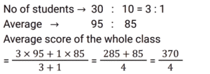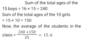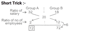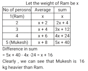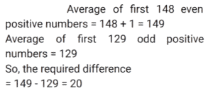 Average (SSC) (Part-5)Total Questions: 5021. Ram, Shyam, Rohan, Reeta and Mukesh are five members of a family who are weighed consecutively and their average weight is calculated after each member is weighed. If the average weight increases by 2 kg each time, how much heavier is Mukesh than Ram? [SSC CGL 13/12/2022 (1st Shift)](a) 14 kg(b) 18 kg(c) 16 kg(d) 12 kgCorrect Answer: (c) 16 kgSolution:22. The average salary of all the employees in a company is Rs.14,000. The average salary of 5 technicians is Rs.18,000 and the average salary of the rest is Rs.13,200. The total number of employees in the company is: [SSC CPO 09/11/2022 (Morning)](a) 28(b) 30(c) 29(d) 27Correct Answer: (b) 30Solution:23. Class 10, consisting of 40 students, took a science test. 30 students had an average score of 95. The other students had an average score of 85. What is the average score of the whole class? [SSC CPO 09/11/2022 (Afternoon)](a) 92.3(b) 92.5(c) 92.4(d) 92.2Correct Answer: (b) 92.5Solution:24. There are six baskets - Green Red, Blue, Yellow, Black and White. Each basket has some rings in it. The average number of rings in all the six baskets is 38. If the blue basket is removed, the average number of rings in the remaining baskets is 34. How many rings are there in the blue basket? [SSC CPO 09/11/2022 (Evening)](a) 22(b) 45(c) 37(d) 58Correct Answer: (d) 58Solution:25. The average age of 10 students and their class teacher is 17 years. If the age of the class teacher is excluded, the average age of the 10 students is reduced by 2 years. What is the age (years) of the class teacher? [SSC CPO 11/11/2022 (Afternoon)](a) 38(b) 36(c) 37(d) 35Correct Answer: (c) 37Solution:26. The average score in an English. exam of a class of 45 students in a coaching centre is 52. A group of 6 boys having an average score of 40 leave the class and another group of eight boys having an average score of 43 join the class. What is the new average score of the class? [SSC CPO 11/11/2022 (Evening)](a) 48(b) 53(c) 49.5(d) 52Correct Answer: (d) 52Solution:27. What is the difference between the average of first 148 even positive numbers and the average of first 129 odd positive numbers? [SSC CGL Tier II (08/08/2022)](a) 21(b) 20(c) 23(d) 19Correct Answer: (b) 20Solution:28. Average age of 7 students of a class is 28 years. Average age of first three students is 30 years. Age of fourth student is 4 years less than the age of fifth student. Ages of last two students is same and is 5 more than the average age of first three students. What is the average age of fourth and fifth student? [SSC CGL Tier II (08/08/2022)](a) 20 years(b) 36 years(c) 16 years(d) 18 yearsCorrect Answer: (d) 18 yearsSolution:29. In a company, the average salary of all the employees is ₹20,000. The average salary of group-A employees is 32,000 while the average salary of group-B employees is ₹18,000. What is the number of employees in group-A if there are 72 employees in group-B? [Graduate Level 02/08/2022 (Shift-3)](a) 9(b) 12(c) 6(d) 8Correct Answer: (b) 12Solution:30. In a school there are 15 boys and 10 girls in class X. The average age of the boys is 16, while the average age of the girls is 15. Find the average age of the students in the class. [Graduate Level 03/08/2022 (Shift-3)](a) 15.8(b) 15.6(c) 15.7(d) 15.5Correct Answer: (b) 15.6Solution:Submit Quiz« Previous12345Next »