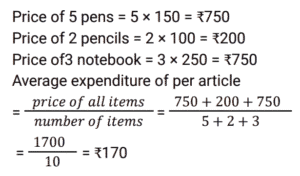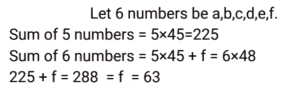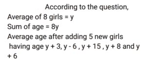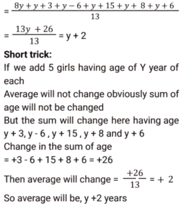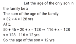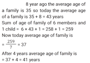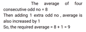 Average (SSC) (Part-5)Total Questions: 5041. There are four people in a family. The average age of these four members is 32 years. The father's age is 50 years, the mother's age is 46 years, and the daughter's age is 20 years. Find the age of the only son in the family. [SSC MTS 07/07/2022 (Evening)](a) 18 years(b) 16 years(c) 14 years(d) 12 yearsCorrect Answer: (d) 12 yearsSolution:42. The average of four consecutive odd numbers is 8. If the next odd number is also considered, then what will be the new average of these five numbers? [SSC MTS 08/07/2022 (Morning)](a) 9(b) 7(c) 10(d) 11Correct Answer: (a) 9Solution:43. Ravi buys 5 pens at ₹150 each, 2 pencils at 100 each, and 3 notebooks at ₹250 each. What is the average expenditure incurred by Ravi per article? [SSC MTS 08/07/2022 (Afternoon)](a) ₹180(b) ₹160(c) ₹170(d) ₹165Correct Answer: (c) ₹170Solution:44. The average weight of all the 200 employees in an office is 68.2 kg, where 2/5 of the employees are ladies and the ratio of the average weight of a man to that of a woman is 7 : 5. Find the average weight of the female employees. [SSC MTS 08/07/2022 (Evening)](a) 60 kg(b) 54 kg(c) 55 kg(d) 59 kgCorrect Answer: (c) 55 kgSolution:45. The average age of eight girls is Y years. 5 new girls having ages (in years) given by y + 3, y - 6, y + 15, y + 8 and y + 6 join the class. What is the new average age of the class? [SSC MTS 11/07/2022 (Morning)](a) (y + 2) years(b) (y + 6) years(c) (y + 3) years(d) (y + 1) yearsCorrect Answer: (a) (y + 2) yearsSolution:46. There are two numbers such that the first number is four times of the second number. If their average is 65, then what is the second number? [SSC MTS 12/07/2022 (Morning)](a) 26(b) 14(c) 24(d) 28Correct Answer: (a) 26Solution:47. 8 years ago, the average age of Rahul's family consisting of 6 members was 35 years. One year ago a new baby was born in this family. What will be the average age of the family four years hence? [SSC MTS 12/07/2022 (Afternoon)](a) 41 years(b) 37 years(c) 40 years(d) 43 yearsCorrect Answer: (a) 41 yearsSolution:48. The average marks obtained in a test by three students is x. If the marks of a new student is also considered, then the average marks increases by 2. What's the marks secured by the new student in the test? [SSC MTS 13/07/2022 (Morning)](a) x + 4(b) x + 6(c) x + 8(d) x + 2Correct Answer: (c) x + 8Solution:49. The average of T₁ and T₂ is 15. The average of T₃ and T₄ is 35. What is the average of T₁, T₂, T₃ and T₄? [SSC MTS 13/07/2022 (Afternoon)](a) 24(b) 30(c) 28(d) 25Correct Answer: (d) 25Solution:50. The mean of five numbers is 45. If a sixth number is also included the mean becomes 48. Find the sixth number. [SSC MTS 13/07/2022 (Afternoon)](a) 73(b) 63(c) 43(d) 53Correct Answer: (b) 63Solution:Submit Quiz« Previous12345