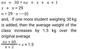 7. In a class with a certain number of students, if one student weighing 30 kg is added, then the average weight of the class increases by 1 kg. If one more student weighing 30 kg is added, then the average weight of the class increases by 1.5 kg over the original average. What is the original average weight (in kg) of the class? [SSC CHSL 09/07/2024 (4th Shift)]