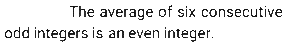 Correct Answer: (c) The average of six consecutive odd integers is an even integer.