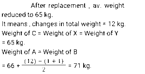 9. The average weight of a group of 12 children is 66 kg. If 2 children, X and Y, replace A and B, the new average weight becomes 65 kg. The weight of A= weight of B and the weight of X = weight of Y. Another child, C, is included in the group, and the new average weight remains 65 kg. Weight of C= weight of X. Find the weight of A. [SSC CHSL 04/08/2023 (3rd Shift)]