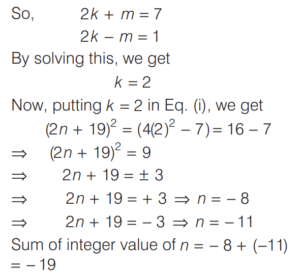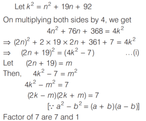 8. What is the sum of all integer values of n for which n² + 19n +92 is a perfect square? [2019 (II) Evening Shift]