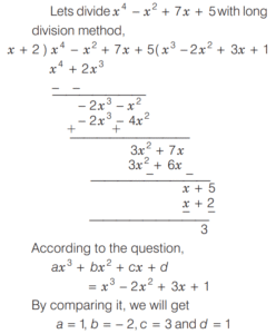 5. The quotient when x⁴ - x²+ 7x + 5 is divided by (x + 2) is ax³ + bx² + cx + d What are the values of a, b, c and d, respectively? [2019 (II) Evening Shift]