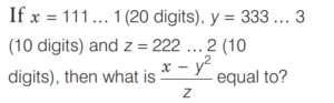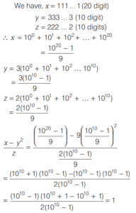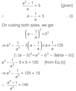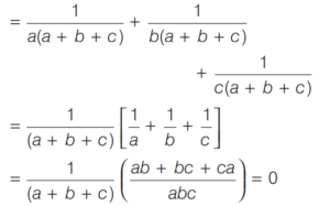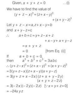 BASIC OPERATION AND FACTORISATION (CDS)Total Questions: 7721. If ab + bc + ca = 0, then the value of [2018 (II) Evening Shift](a) –1(b) 0(c) 1(d) 2Correct Answer: (b) 0Solution:We have, ab + bc + ca = 0 22. If a + b + = 2c, then what is the [2018 (I) Morning Shift](a) −1(b) 0(c) 1(d) 2Correct Answer: (c) 1Solution:Given, a + b = 2c23. Solve the following equation [2018 (I) Morning Shift](a) 1(b) 2(c) 0(d) −1Correct Answer: (a) 1Solution:24. If x + y + z = 0 , then what is (y + z - x)³ + (z + x - y)³ (x + y - z)³ equal to ? [2018 (I) Morning Shift](a) (x + y + z)³(b) 3(x + y) (y + z) (z + x)(c) 24xyz(d) - 24xyzCorrect Answer: (d) - 24xyzSolution:25. If (x + 3) is a factor of x³ + 3x² + 4x + k then what is the value of k? [2018 (I) Morning Shift](a) 12(b) 24(d) 72Correct Answer: (a) 12Solution:As, (x + 3) is a factor of given equation26. Which one of the following is a zero of the polynomial 3x³ + 4x² -7 ? [2018 (I) Morning Shift](a) 0(b) 1(c) 2(d) −1Correct Answer: (b) 1Solution:27. The remainder when 3x³ + kx² + 5x - 6 is divided by (x + 1) is -7. What is the value of k? [2018 (I) Morning Shift](a) -14(b) 14(c) -7(d) 7Correct Answer: (d) 7Solution:28. If f(x) and g(x) are polynomials of degree p and q respectively, then the degree of {f(x) ± g(x)} (if it is non- zero) is [2018 (I) Morning Shift](a) greater than min (p, q)(b) greater than max (p, q)(c) less than or equal to max (p, q)(d) equal to min (p, q)Correct Answer: (c) less than or equal to max (p, q)Solution:29. Solve the following equation [2018 (I) Morning Shift](a) 125(b) −125(c) 140(d) −140Correct Answer: (c) 140Solution:30. Solve the following equation [2017 (II) Evening Shift](a) 1/2(b) 1(c) 2(d) 3Correct Answer: (b) 1Solution:Submit Quiz« Previous12345678Next »